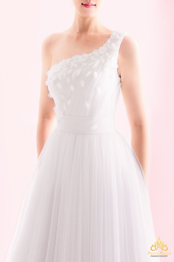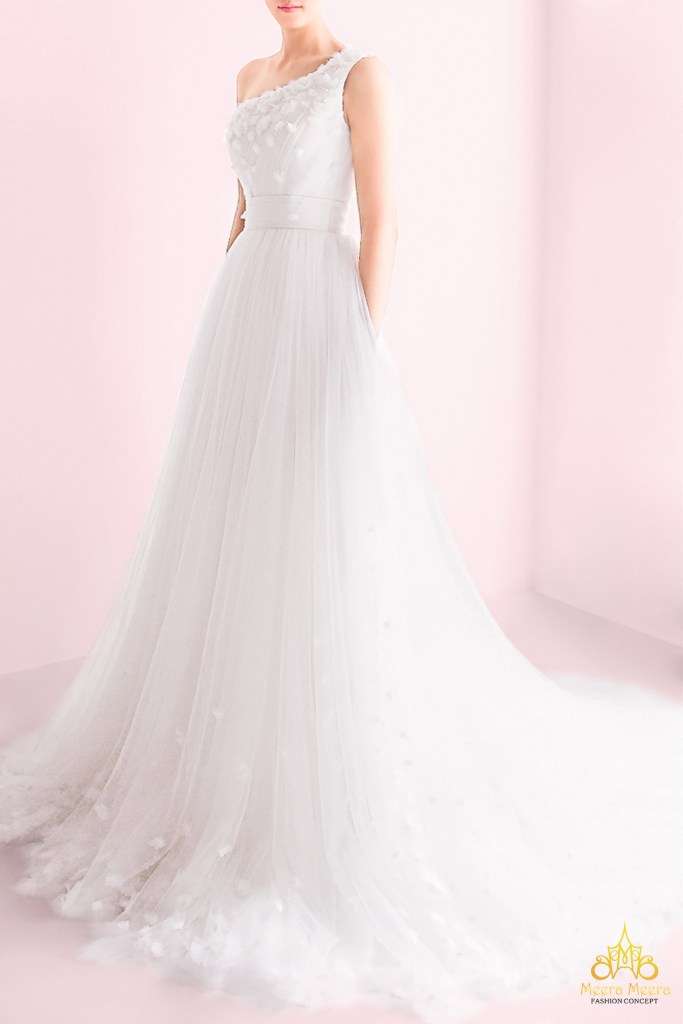 ÁO CƯỚI DẠ TIỆC LỆCH VAI DÁNG VÁY NỮ THẦN HY LẠP ĐÍNH HOA RƠI KH1235