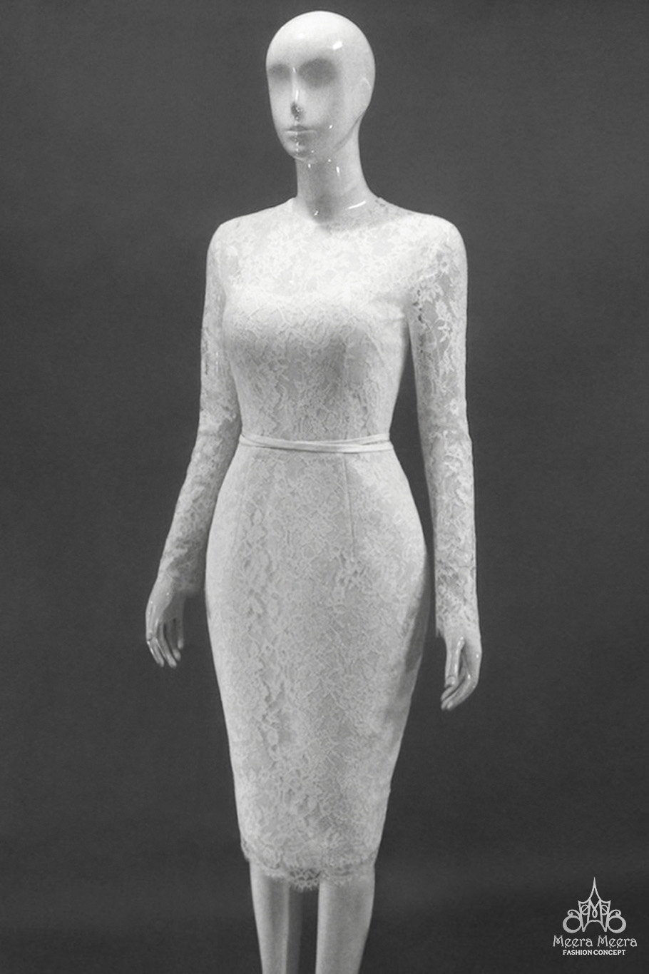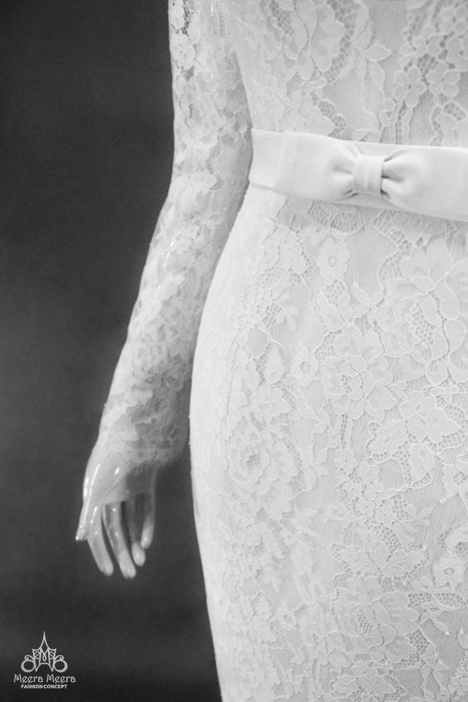 ÁO CƯỚI NGẮN THÂN REN CHANTILLY TAY DÀI CHÂN VÁY BÚT CHÌ. MÃ KH3921