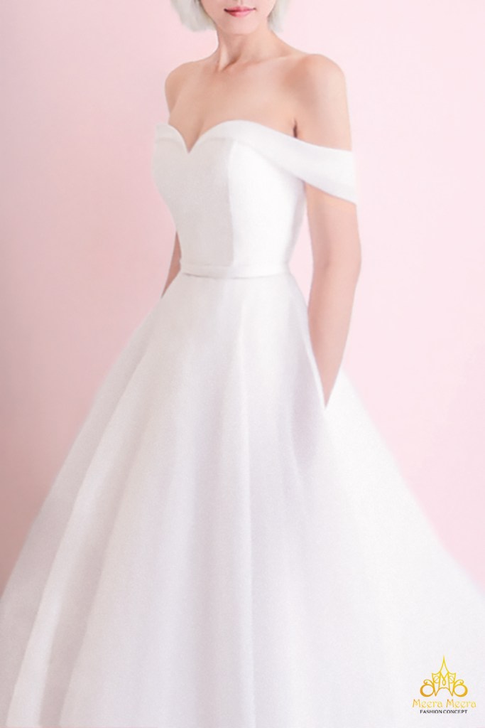 ÁO CƯỚI CHỮ A TÙNG CHUÔNG VOAN TRỄ VAI NHẸ NHÀNG. MÃ KH2046