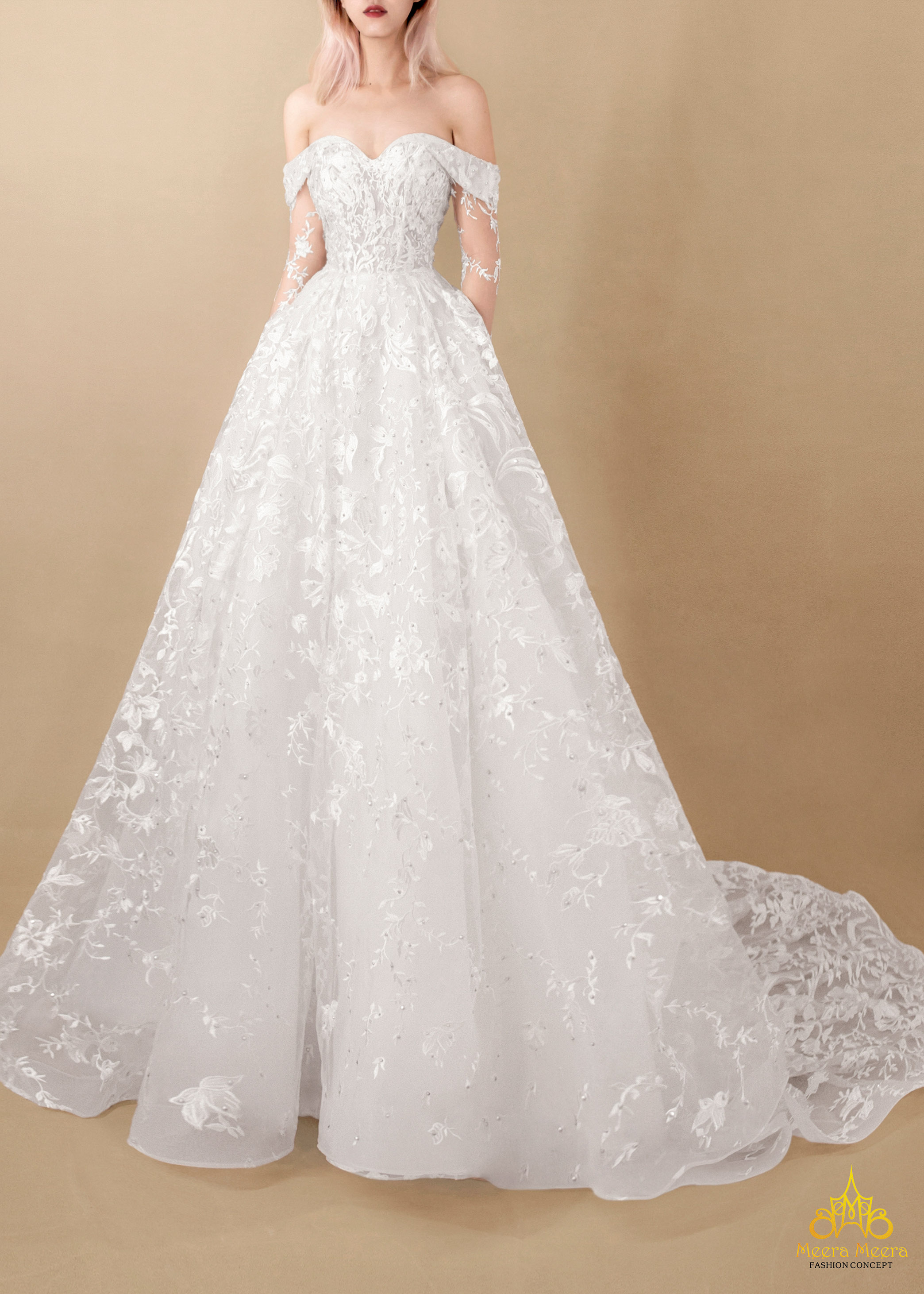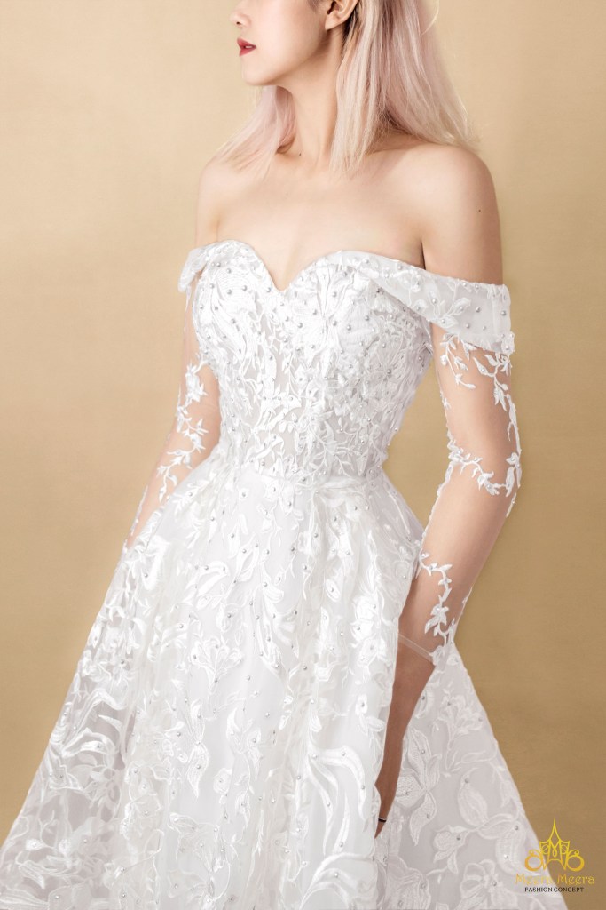 ÁO CƯỚI CHỮ A TRỄ VAI REN TOÀN THÂN ĐẦY LÃNG MẠN. MÃ KH3919