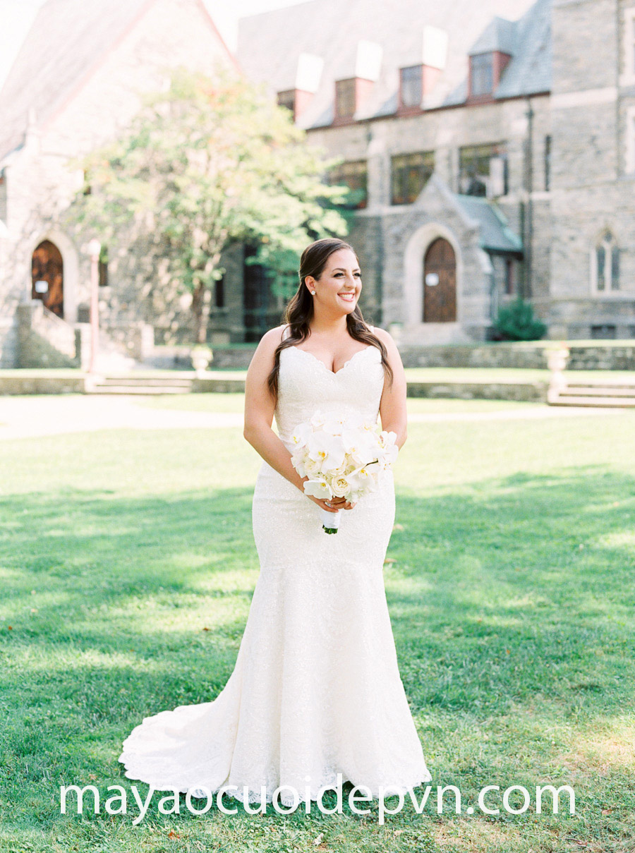 Tuy nhiên, những cô dâu ngoại cỡ có vóc dáng to lớn sẽ gặp nhiều khó khăn hơn trong việc lựa chọn chiếc váy cưới phù hợp cho mình. Bạn có muốn tìm được một chiếc áo cưới cho cô dâu big size có thể che bớt các khuyết điểm vai thô, bắp tay to, thân hình quá khổ mà vẫn tôn vinh được những đường cong của bạn? Hãy để chúng mình cùng bạn lựa chọn chiếc váy cưới có thể phản ánh được tinh thần và phong cách cá nhân của bạn.