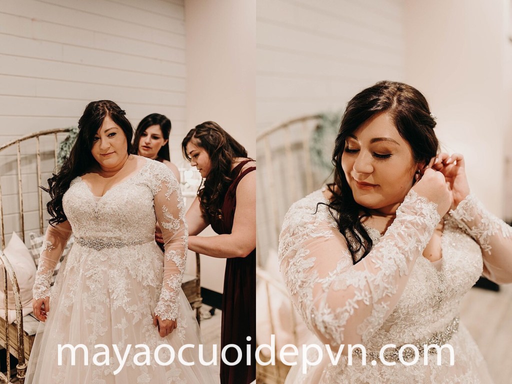 ÁO CƯỚI BIG SIZE TAY DÀI TRANG TRỌNG
