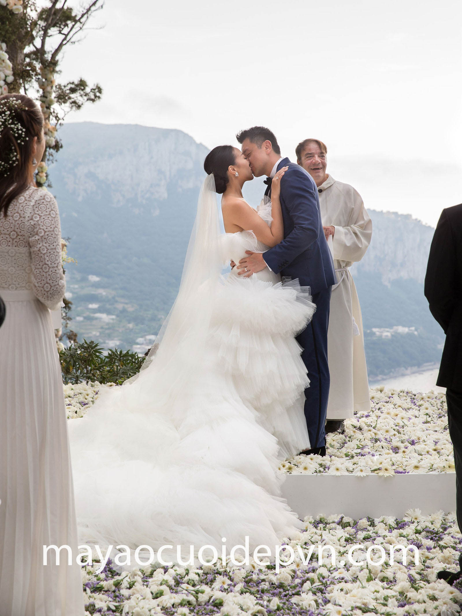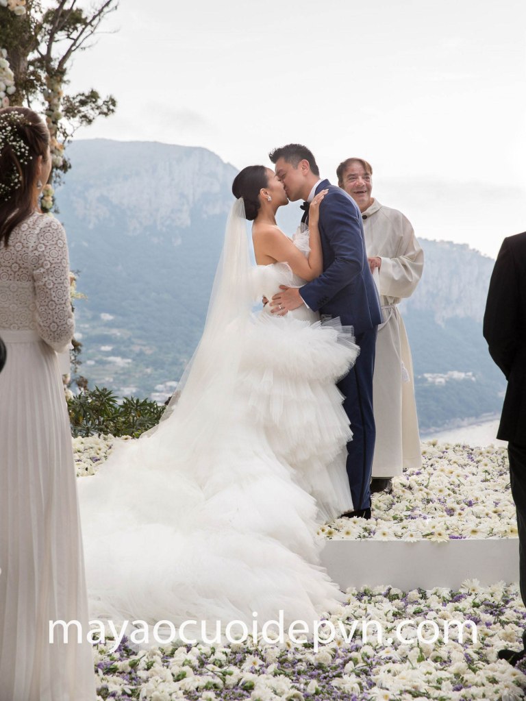 Tiểu thư rich kid ‘Hội con nhà siêu giàu châu Á” – Feiping Chang đã từng khiến giới mộ điệu xôn xao khi diện lên người siêu phẩm váy cưới Haute Couture tuyệt đẹp của nhà mốt Giambattista Valli. Mẫu váy xếp tầng bèo vô cùng lộng lẫy nhưng rất đỗi nhẹ nhàng, hoàn toàn phù hợp với không gian tiệc cưới hướng thẳng ra vùng vịnh Capri tráng lệ, đồng thời khẳng định đẳng cấp sành điệu của quý cô sang chảnh nức tiếng châu Á.