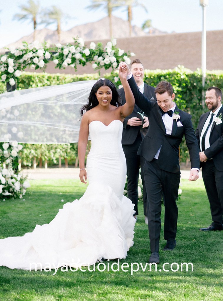 Xin mời các cô dâu tương lai cùng nhìn ngắm những khoảnh khắc đẹp nhất của các cô dâu trên khắp thế giới, diện lên người các mẫu váy cưới đuôi cá thiết kế phù hợp với chủ đề đám cưới lại giúp cô dâu khẳng định phong cách cá nhân ấn tượng. Và từ đó, cập nhật thêm xu hướng áo cưới đuôi cá mới nhất hiện nay nhé!