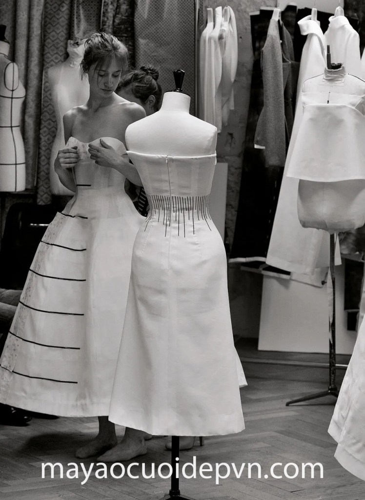 QUÁ TRÌNH MAY ĐO THIẾT KẾ VÁY CƯỚI NGẮN COUTURE