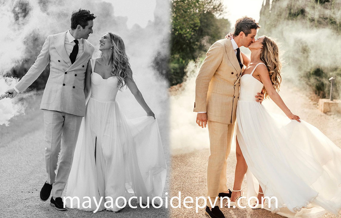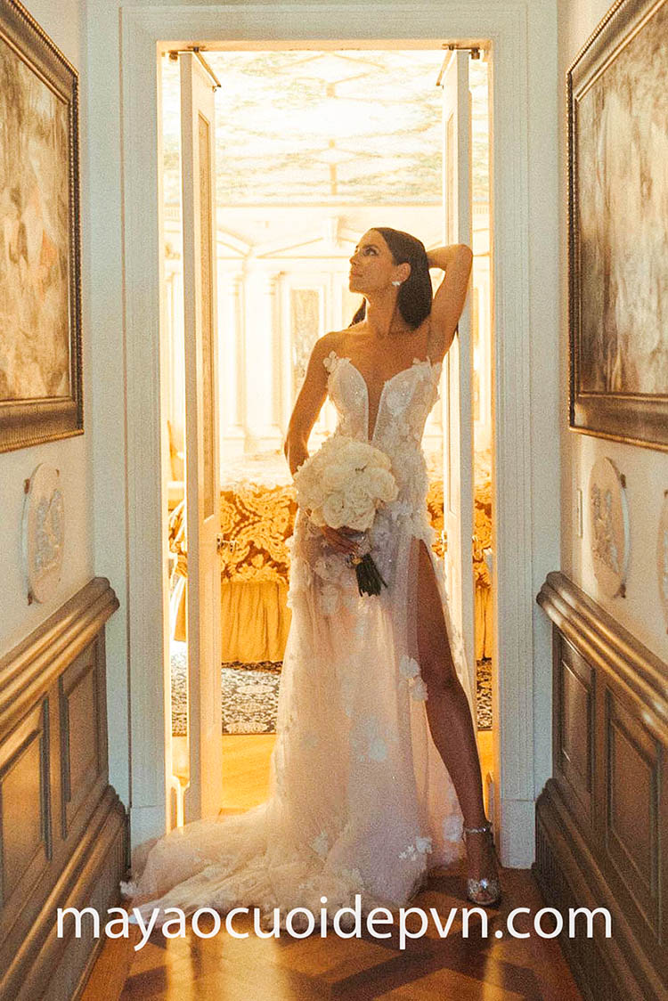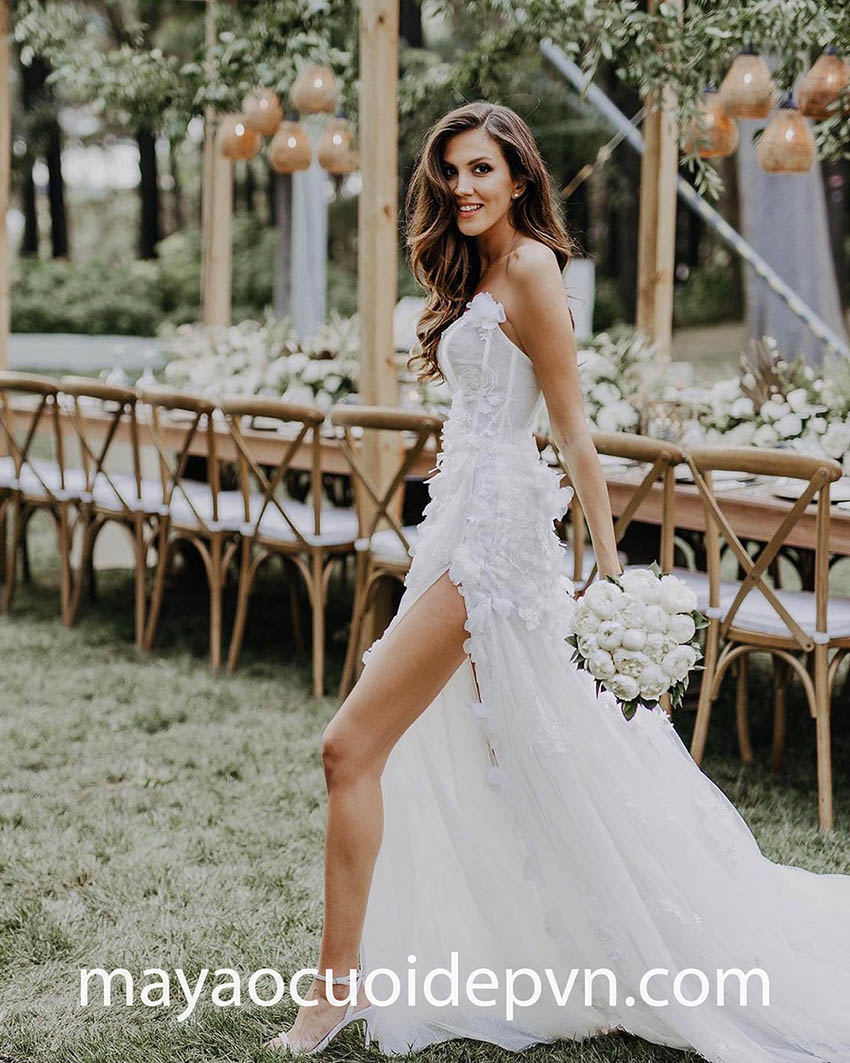 ÁO CƯỚI XẺ TÀ THIẾT KẾ RIÊNG CHO CÔ DÂU KHOE CHÂN THON