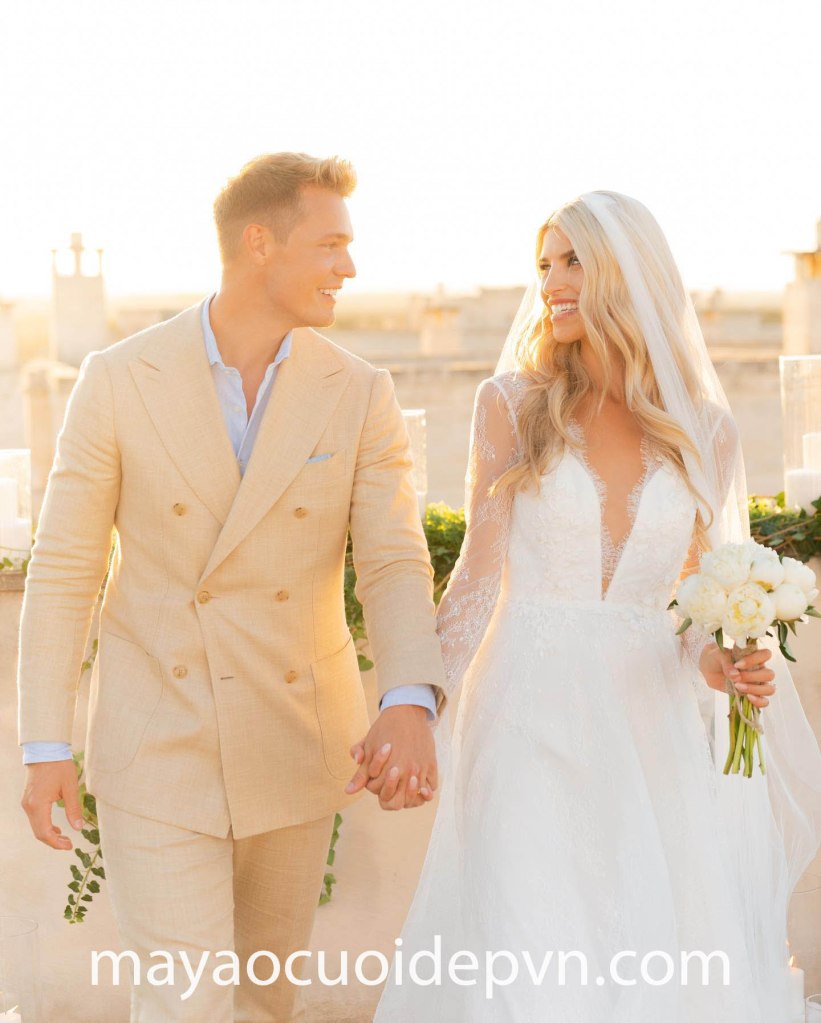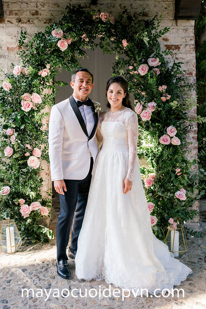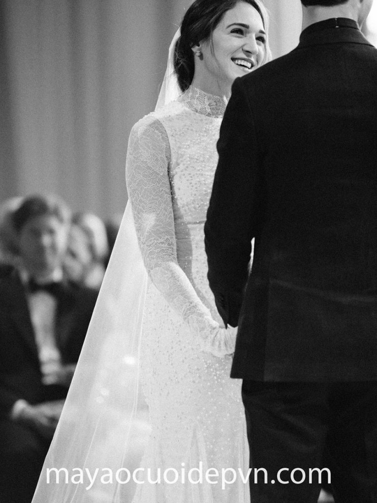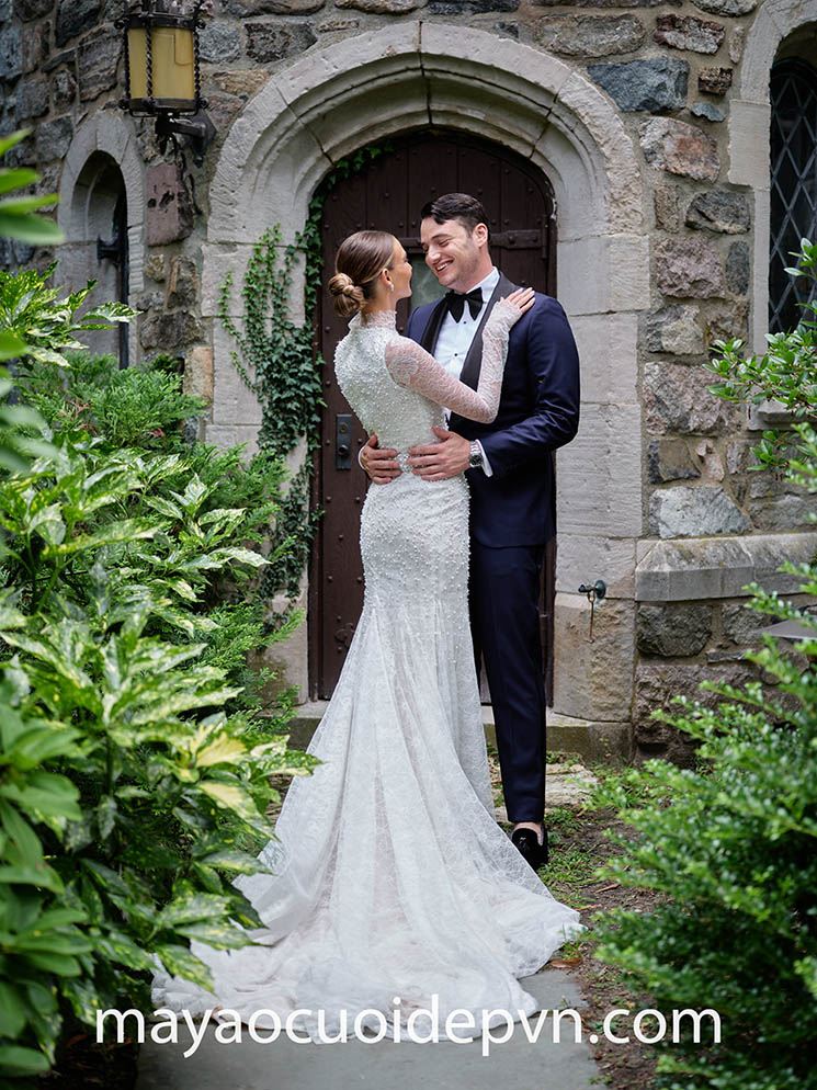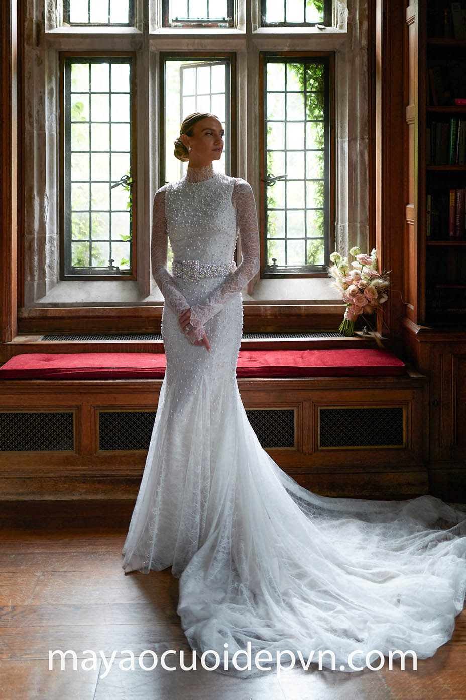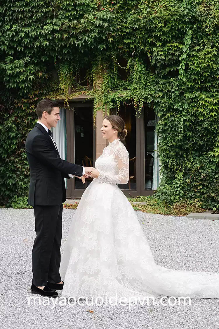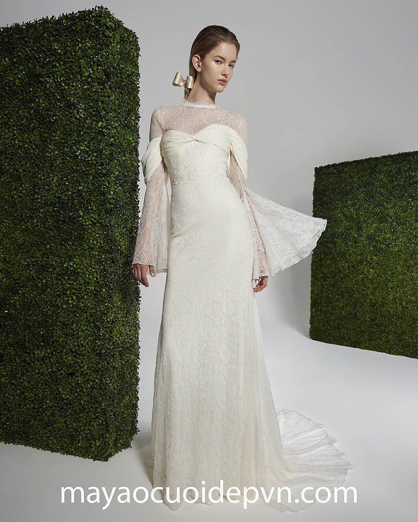 Trong những đám cưới đòi hỏi tính chất trang trọng, đặc biệt là lễ cưới Nhà thờ; áo cưới ren Chantilly cổ cao tay dài sẽ là lựa chọn hoàn hảo giúp bạn ghi điểm trong mắt mọi quan khách.