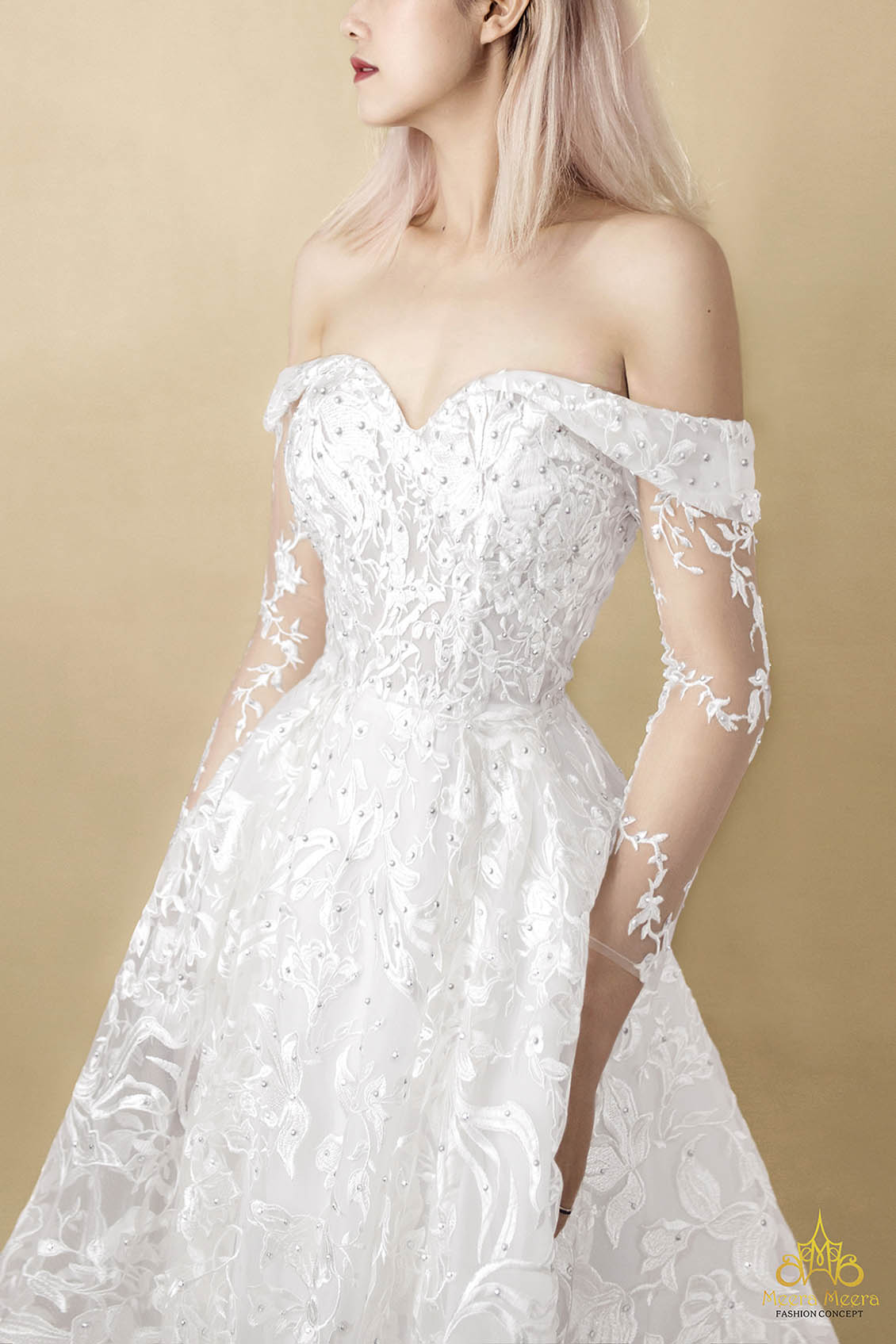 Hôm nay, mời bạn cùng Meera Meera Fashion Concept khám phá kiểu áo cưới trễ vai quyến rũ giúp khoe trọn khung xương quai xanh cùng bờ vai mềm mại nữ tính, đồng thời cập nhật thêm những xu hướng đầm cưới trễ vai đẹp nhất để sẵn sàng cho đám cưới trong mơ của bạn nhé.