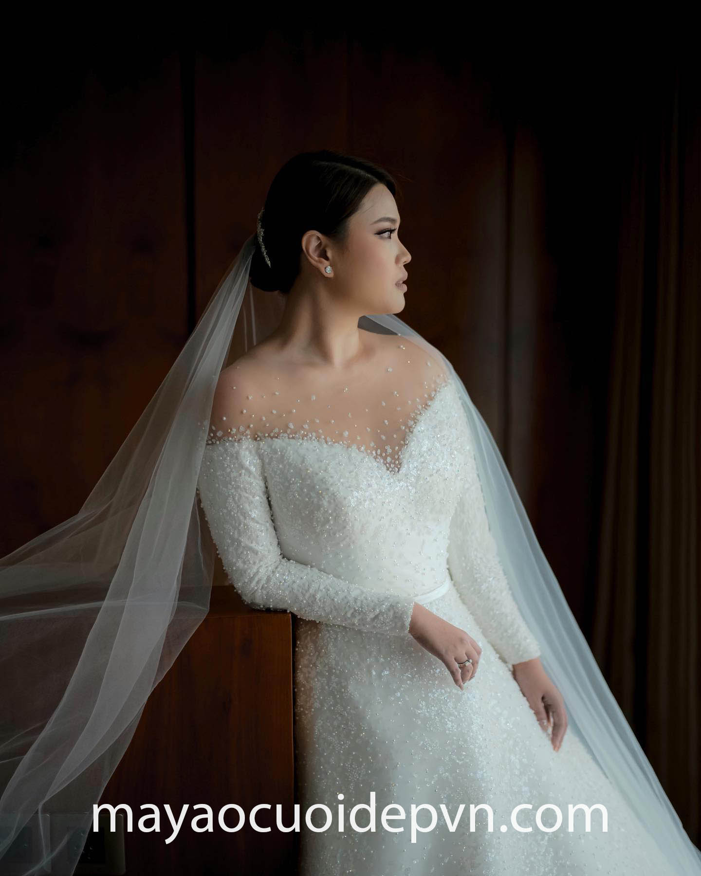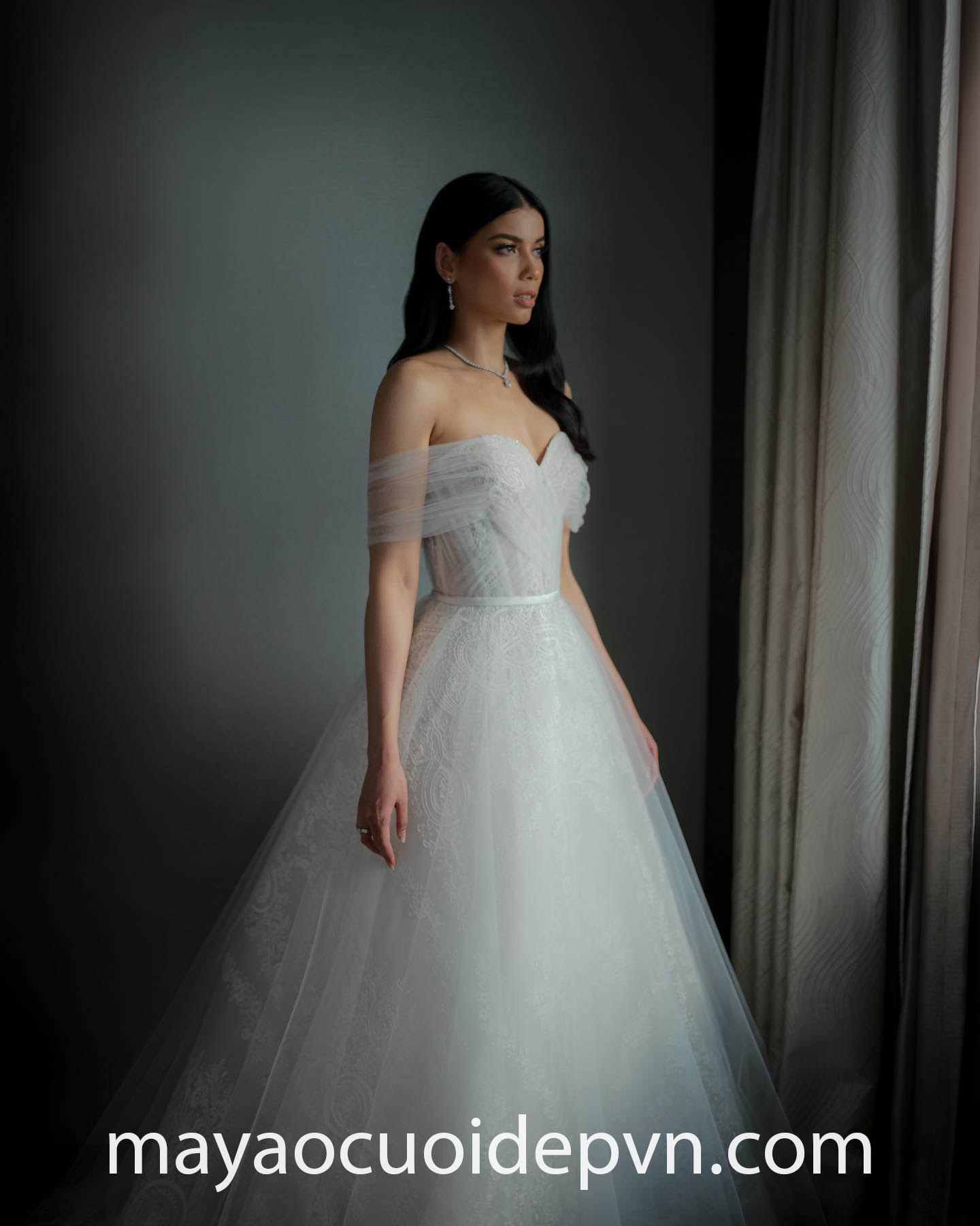 ÁO CƯỚI TRỄ VAI CUSTOM THIẾT KẾ RIÊNG
