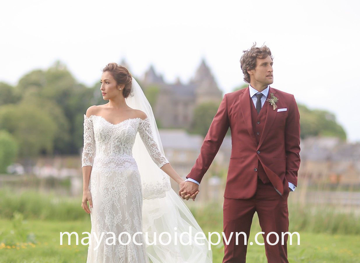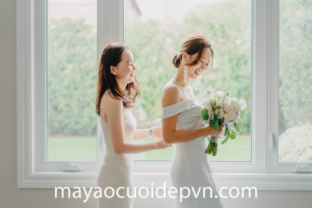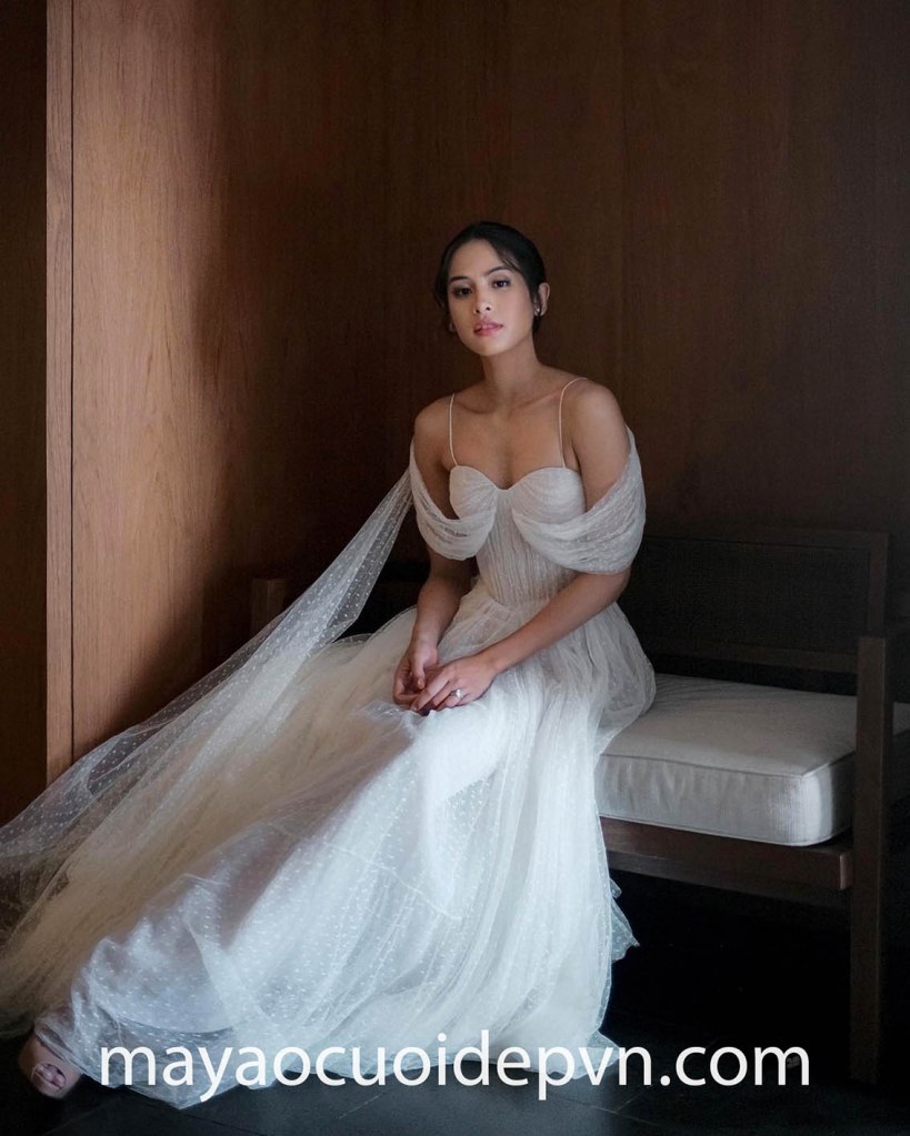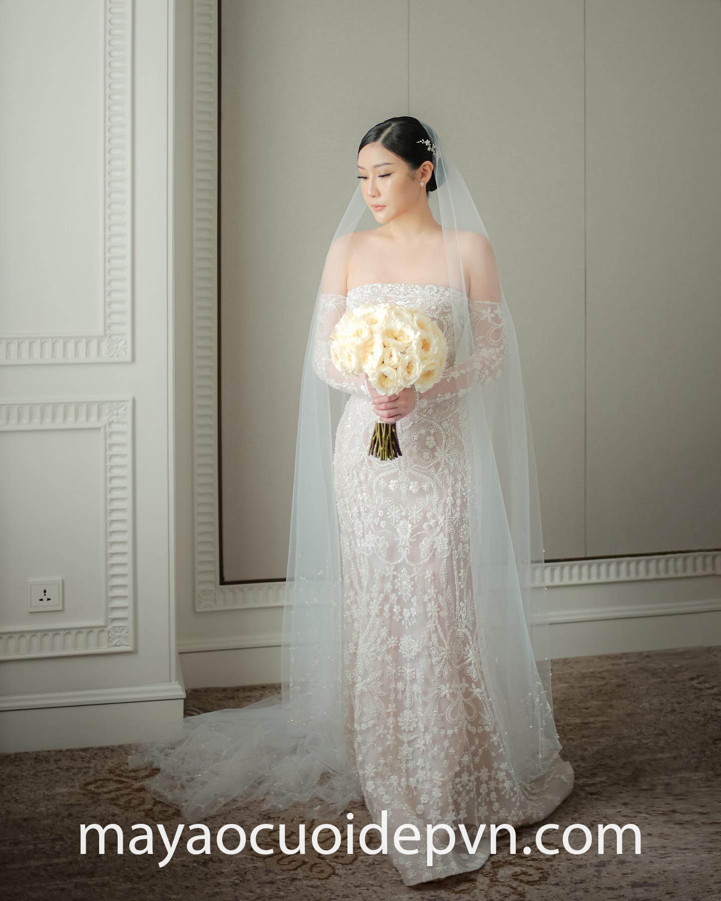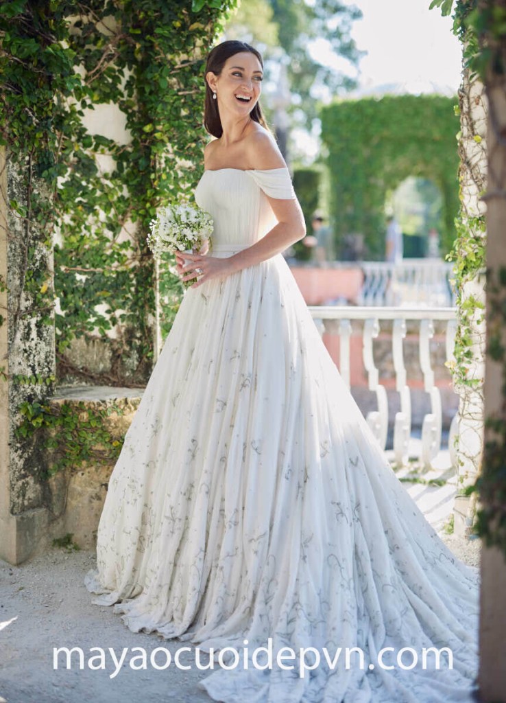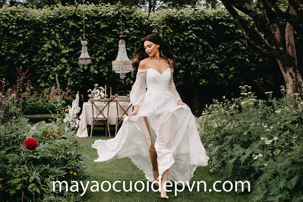 CÔ DÂU MẶC VÁY CƯỚI TRỄ VAI ĐẸP NHẤT