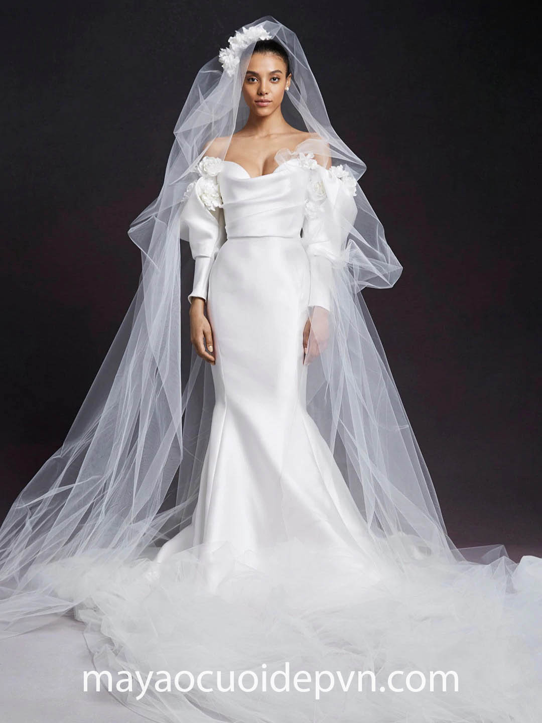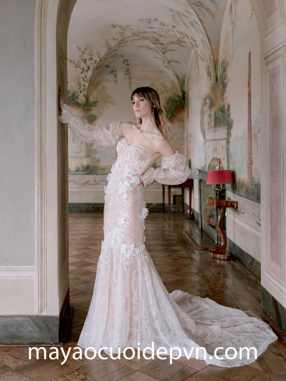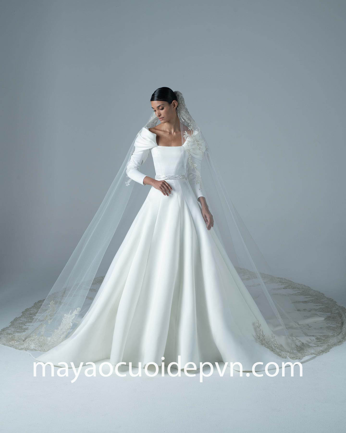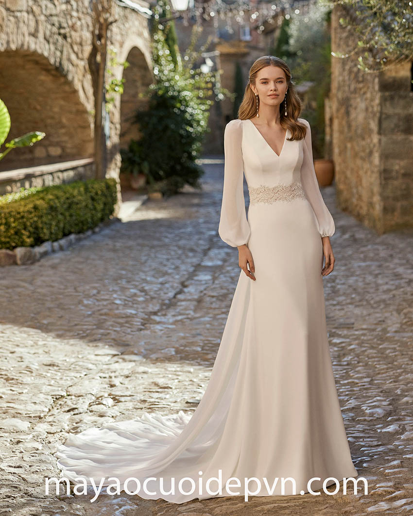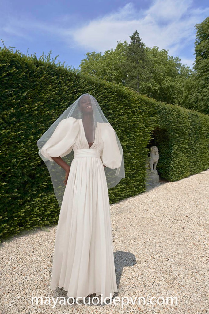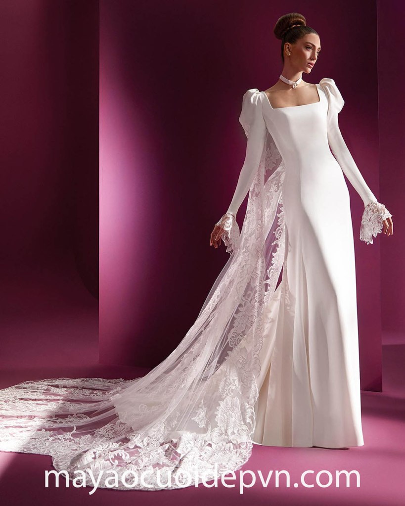 Ở những đám cưới đòi hỏi tính chất thanh lịch và trang trọng, đặc biệt là trong Nhà thờ, áo cưới tay phồng dài sẽ là lựa chọn lý tưởng giúp bạn vừa đảm bảo lịch sự, đồng thời vẫn có điểm nhấn rất riêng của mình.