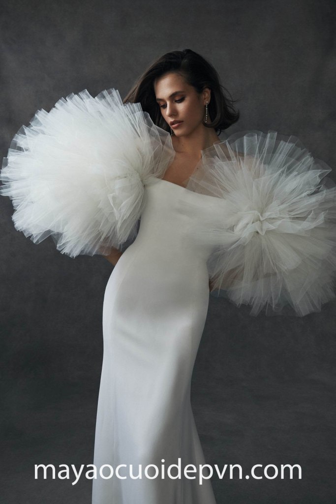 Với những cô dâu yêu thích phong cách thời trang vượt thời gian, những thiết kế váy cưới tay phồng minimalist với sự phá cách mới lạ trong kiểu dáng, sử dụng đa dạng các chất liệu như satin đứng phom sắc nét, lụa mềm mại gợi cảm hay vải lưới nhẹ nhàng bay bổng,… đi cùng điểm nhấn nơi tay áo phồng sẽ dễ dàng giúp bạn toả sáng tự tin trong ngày cưới.