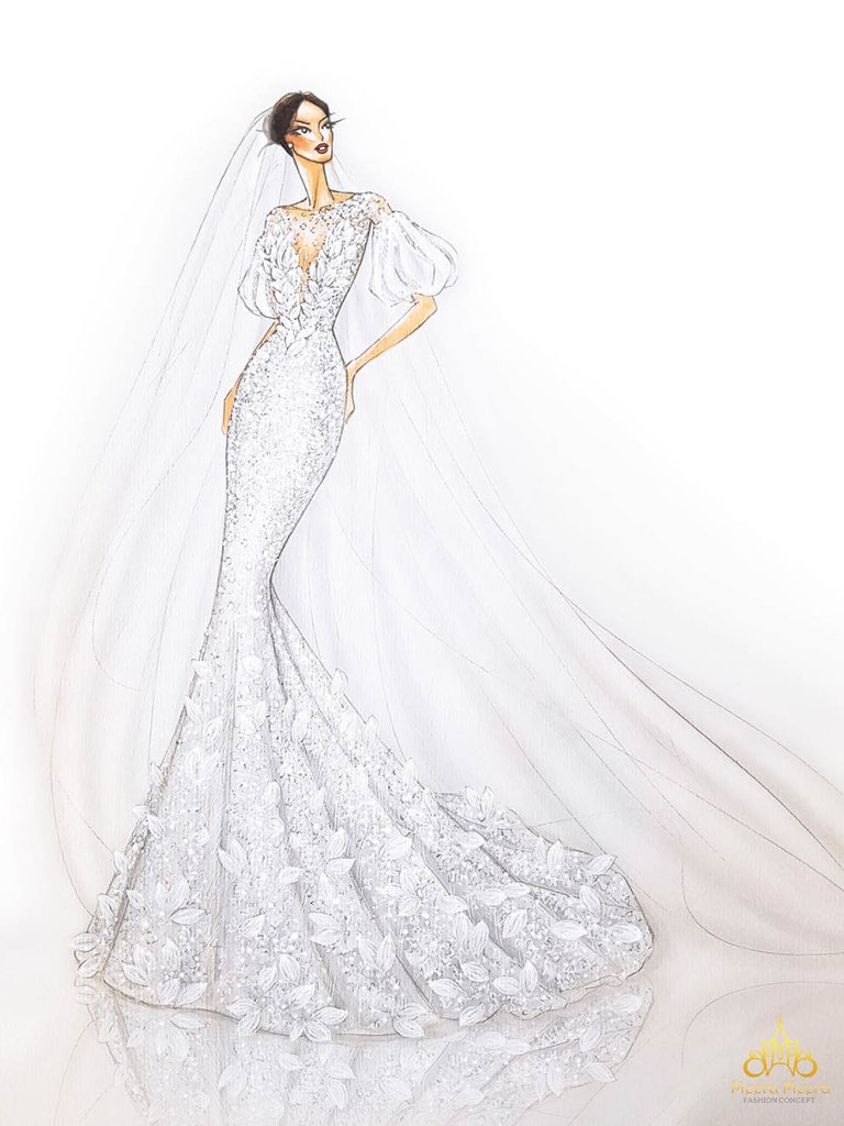 Đầu tiên, mỗi chiếc váy cưới tay phồng bespoke đều được thành hình từ bản phác thảo chi tiết nhất.