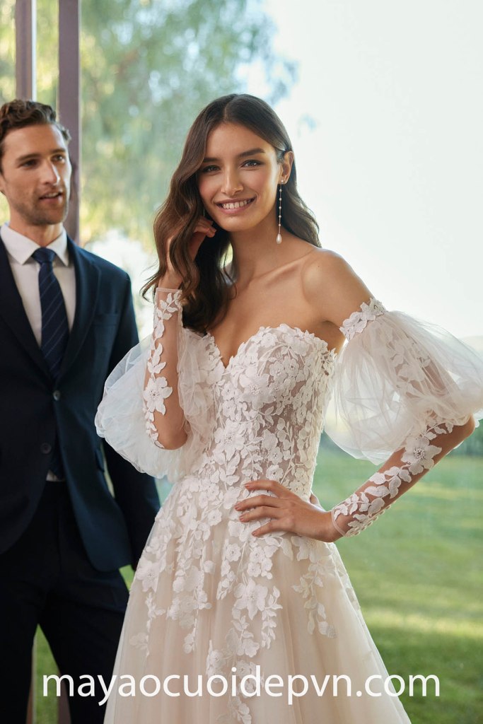 Cô dâu ưa chuộng nét đẹp nữ tính và gợi cảm chắc chắn không thể bỏ qua những kiểu áo cưới ren tay phồng, đây là sự kết hợp ăn ý giữa chất liệu và kiểu tay áo đặc sắc để tạo nên vẻ ngoài vô cùng lôi cuốn dành riêng cho bạn.