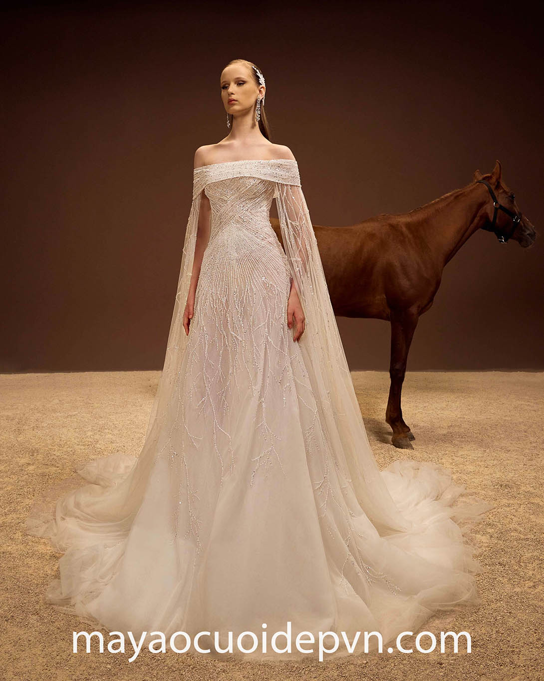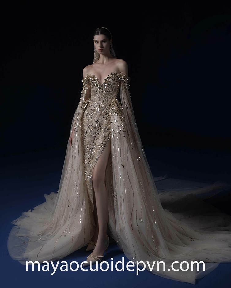 VÁY CƯỚI DỰ TIỆC TAY CHOÀNG CAPE