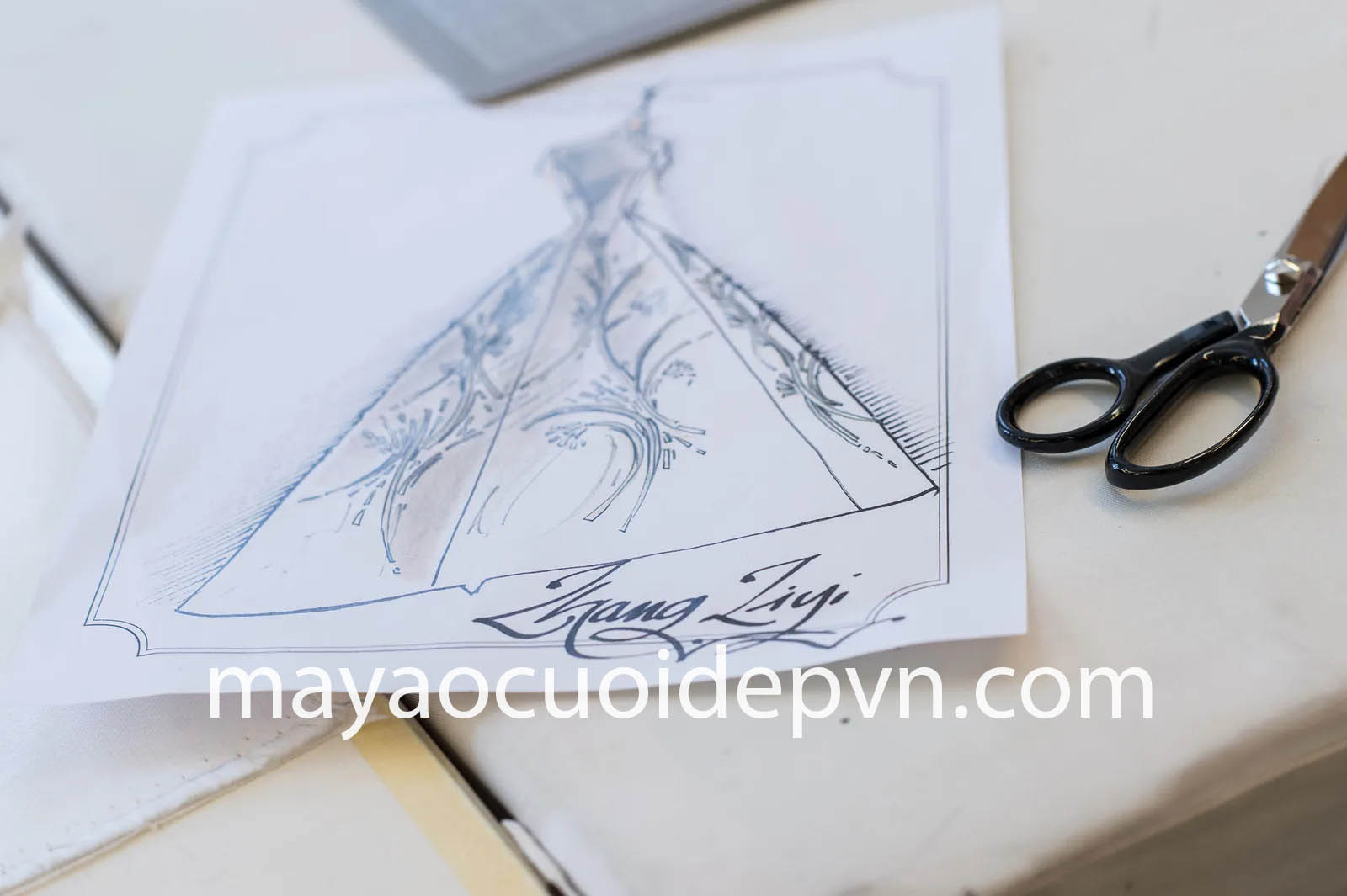 Bắt đầu hành trình của chiếc váy cưới sẽ dựa trên ý tưởng và mong muốn của từng cô dâu, mỗi chiếc váy cưới custom-made đều được hình thành từ bản phác thảo chi tiết nhất.