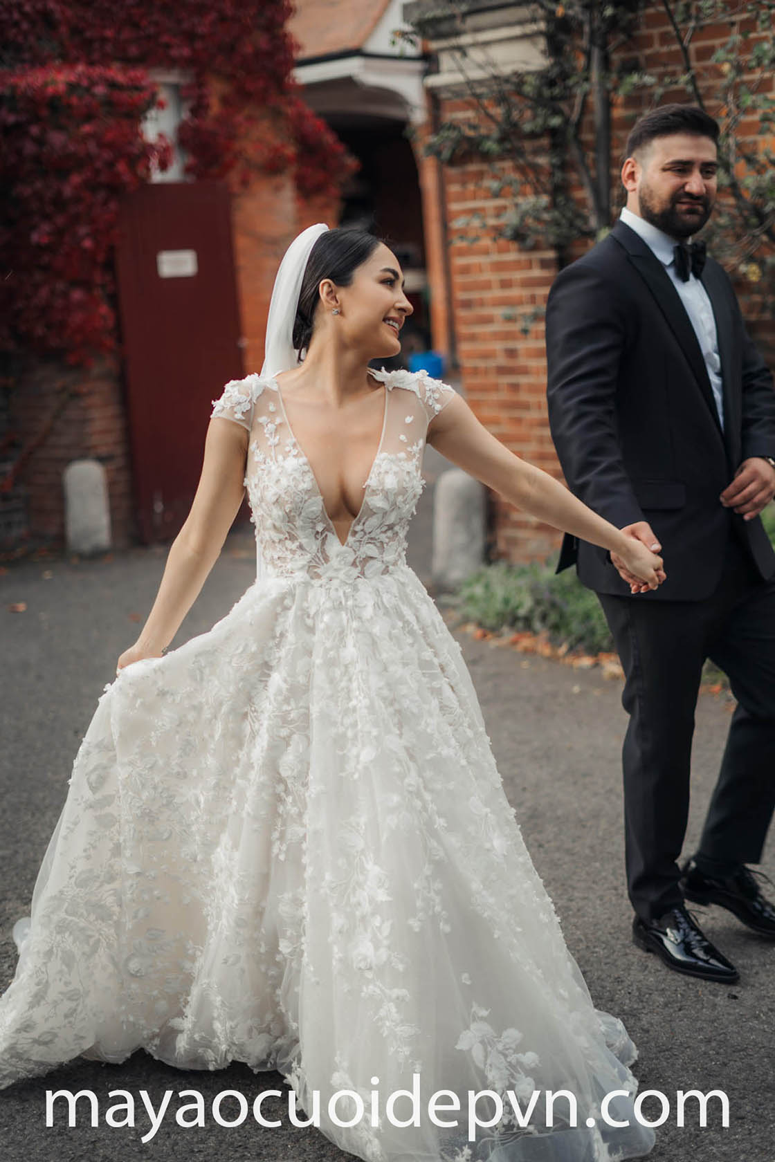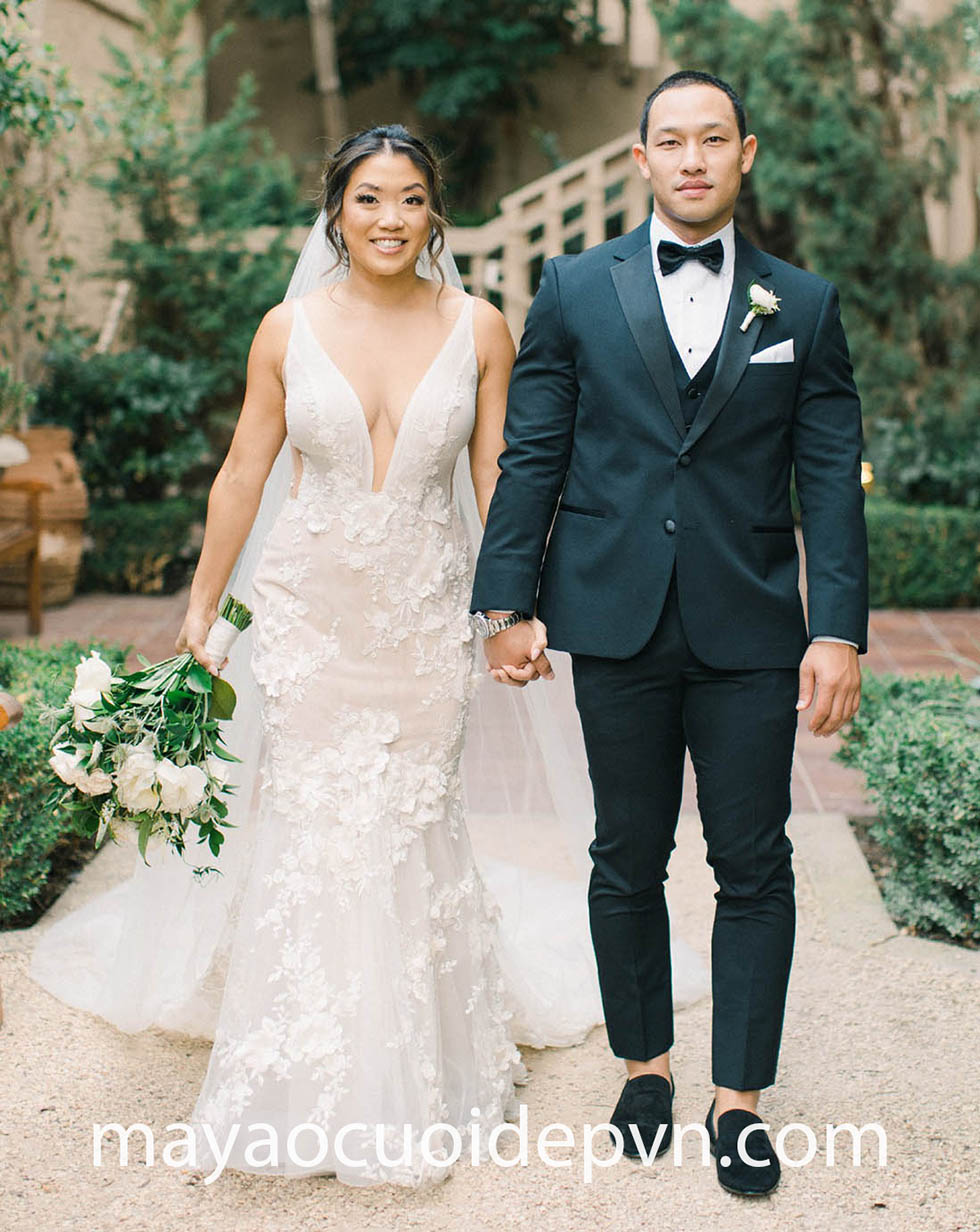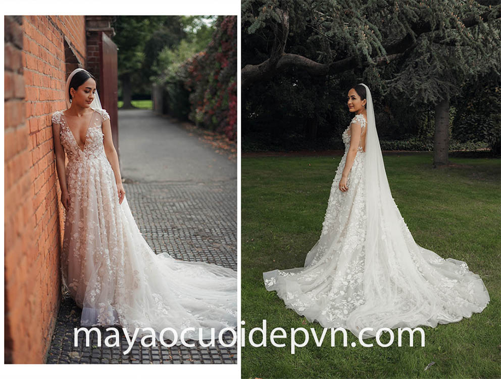 VÁY CƯỚI CỔ V BESPOKE THIẾT KẾ RIÊNG ẤN TƯỢNG