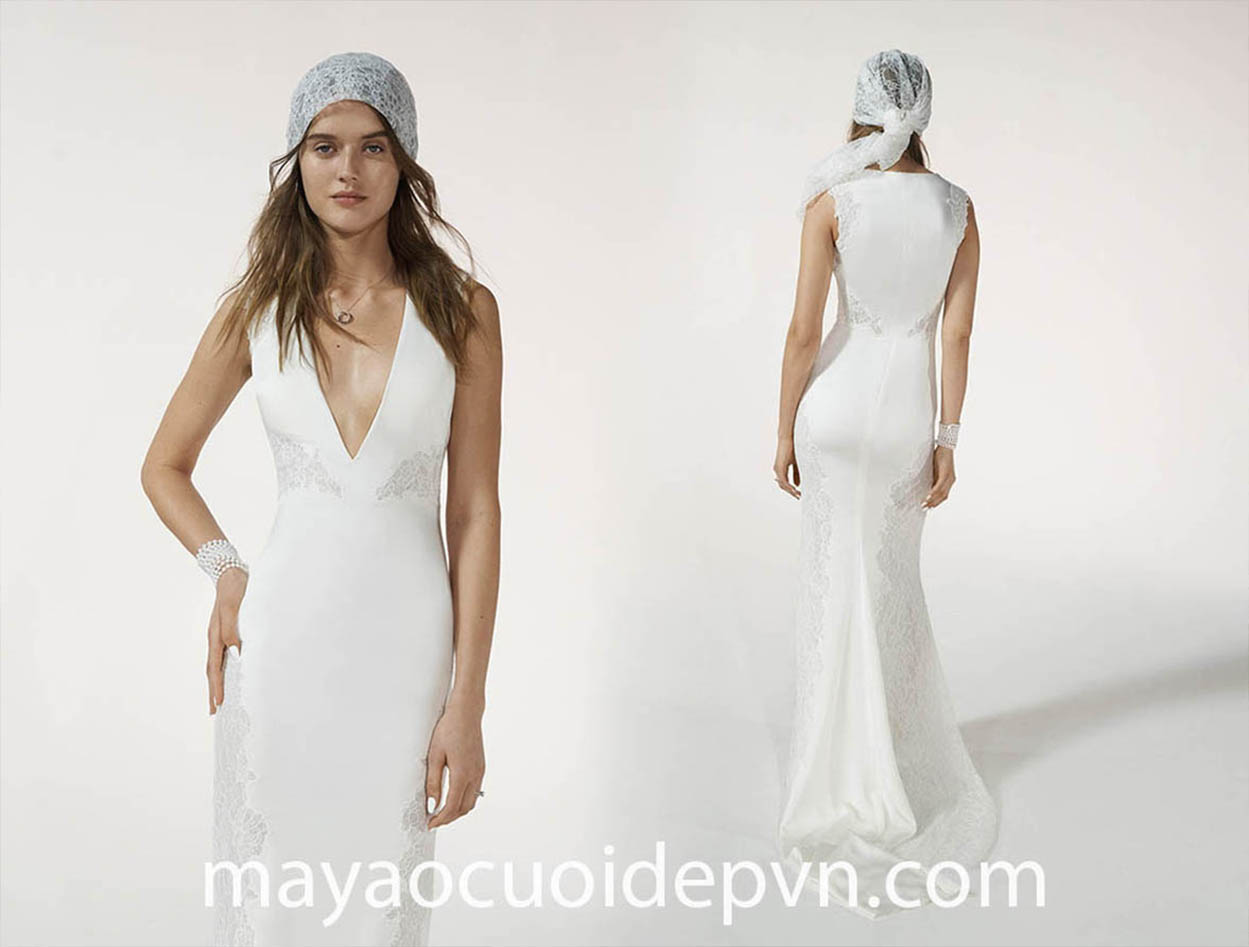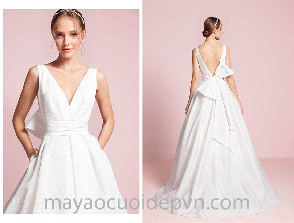 ÁO CƯỚI CỔ V PHONG CÁCH TỐI GIẢN