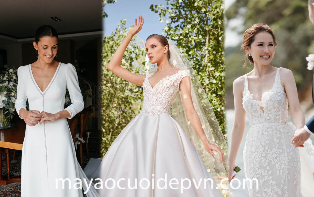XU HƯỚNG ÁO CƯỚI CỔ V ĐƯỢC YÊU THÍCH NHẤT