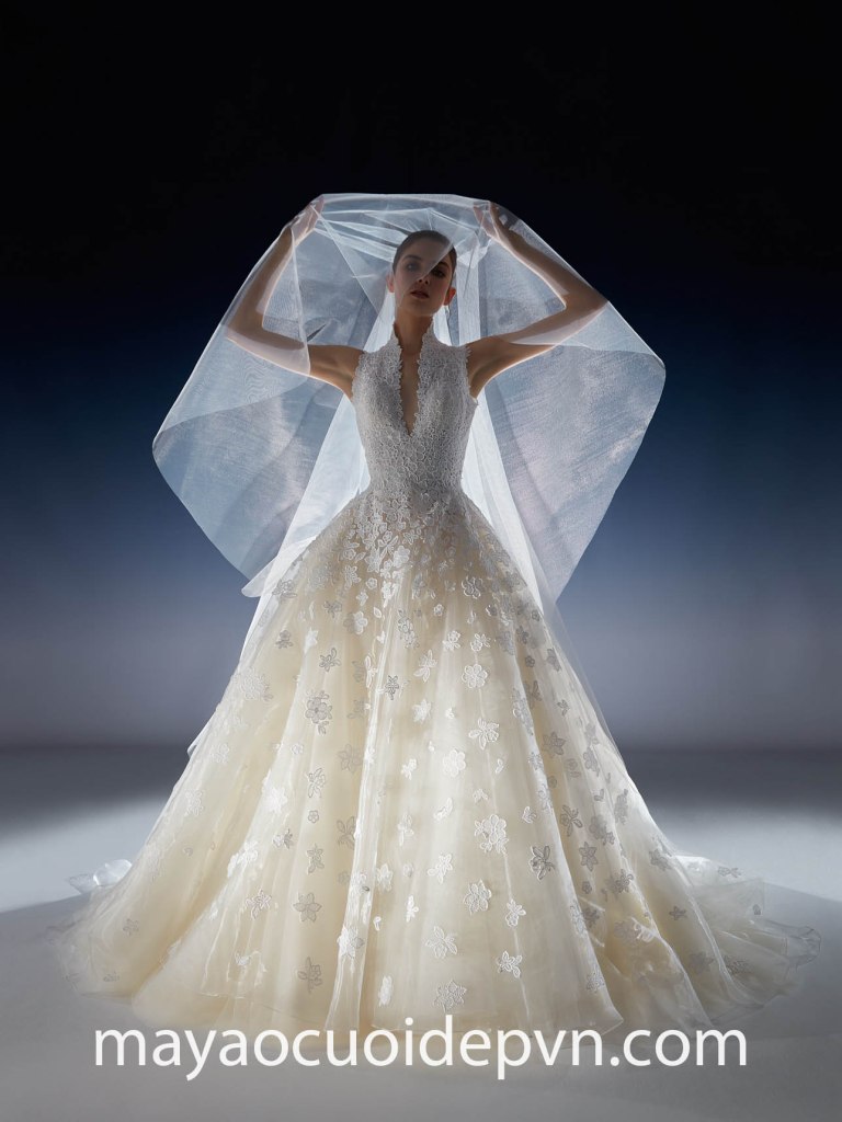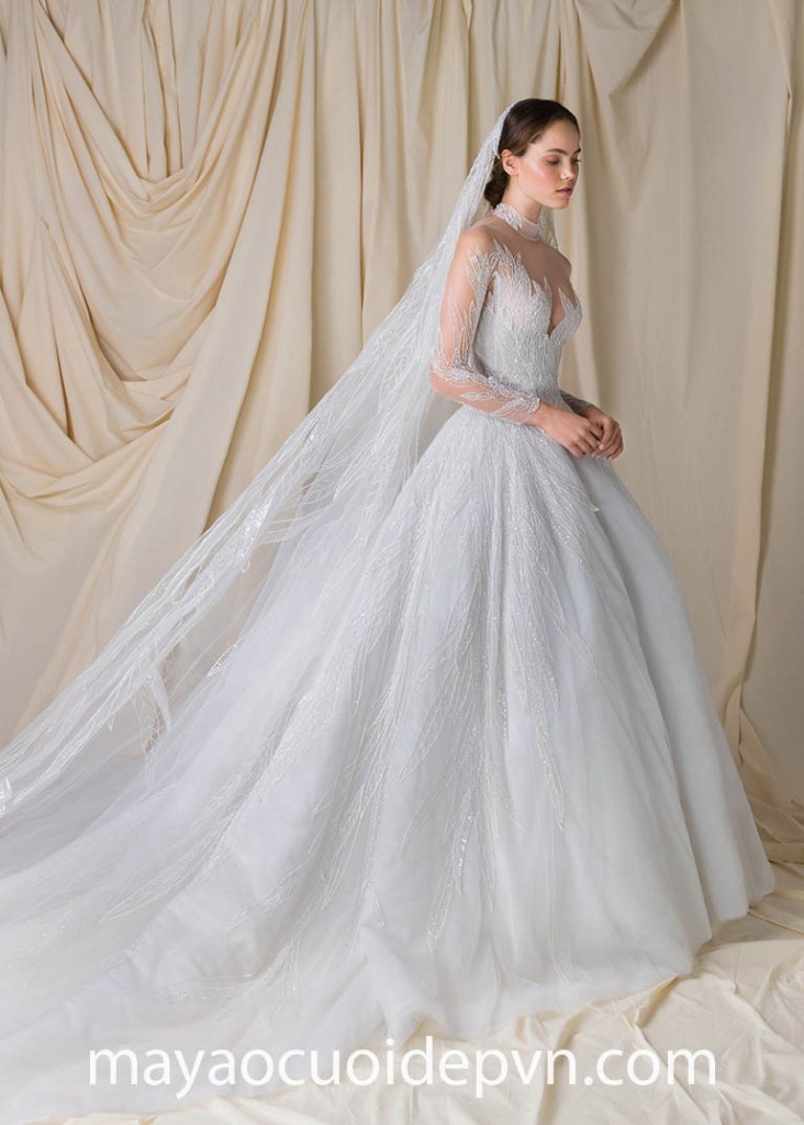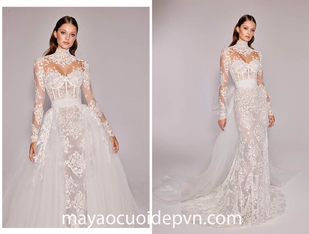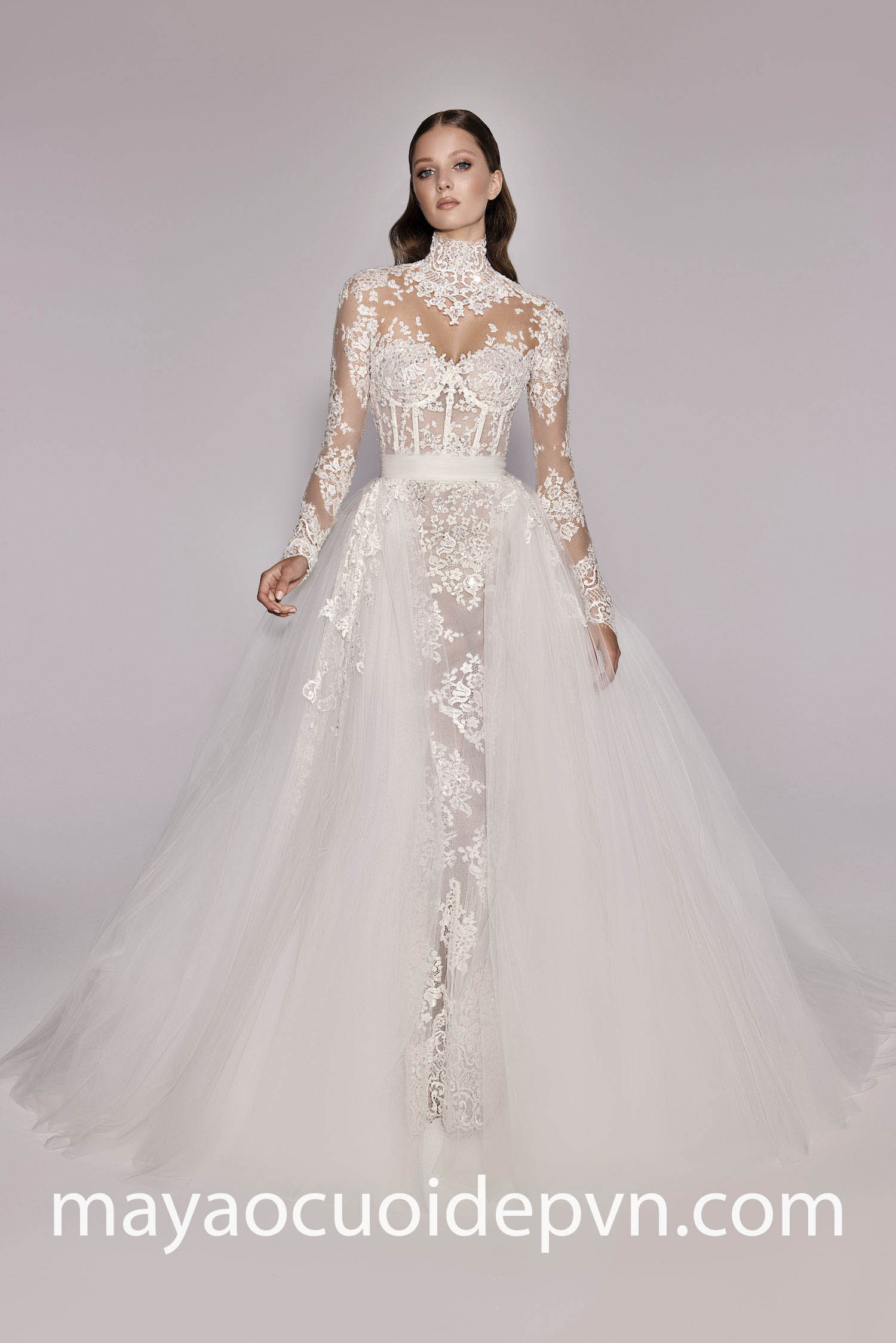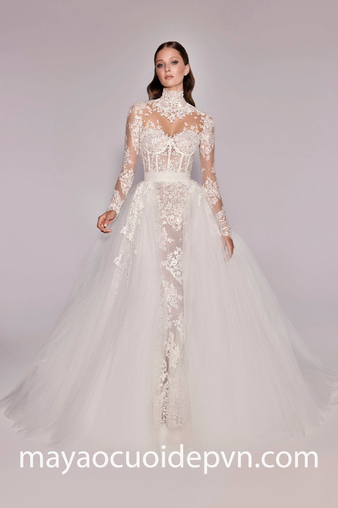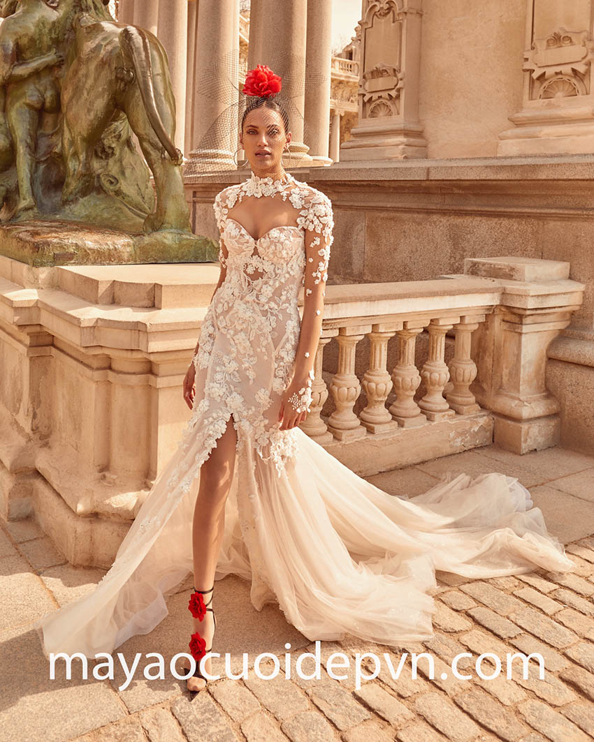 VÁY CƯỚI CỔ CAO XẺ TÀ