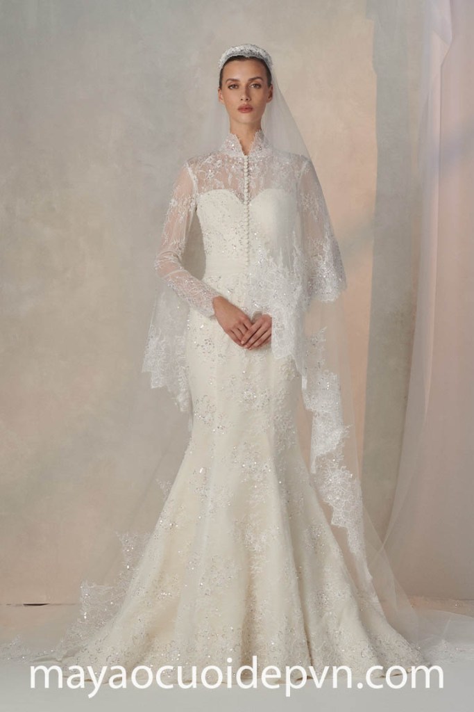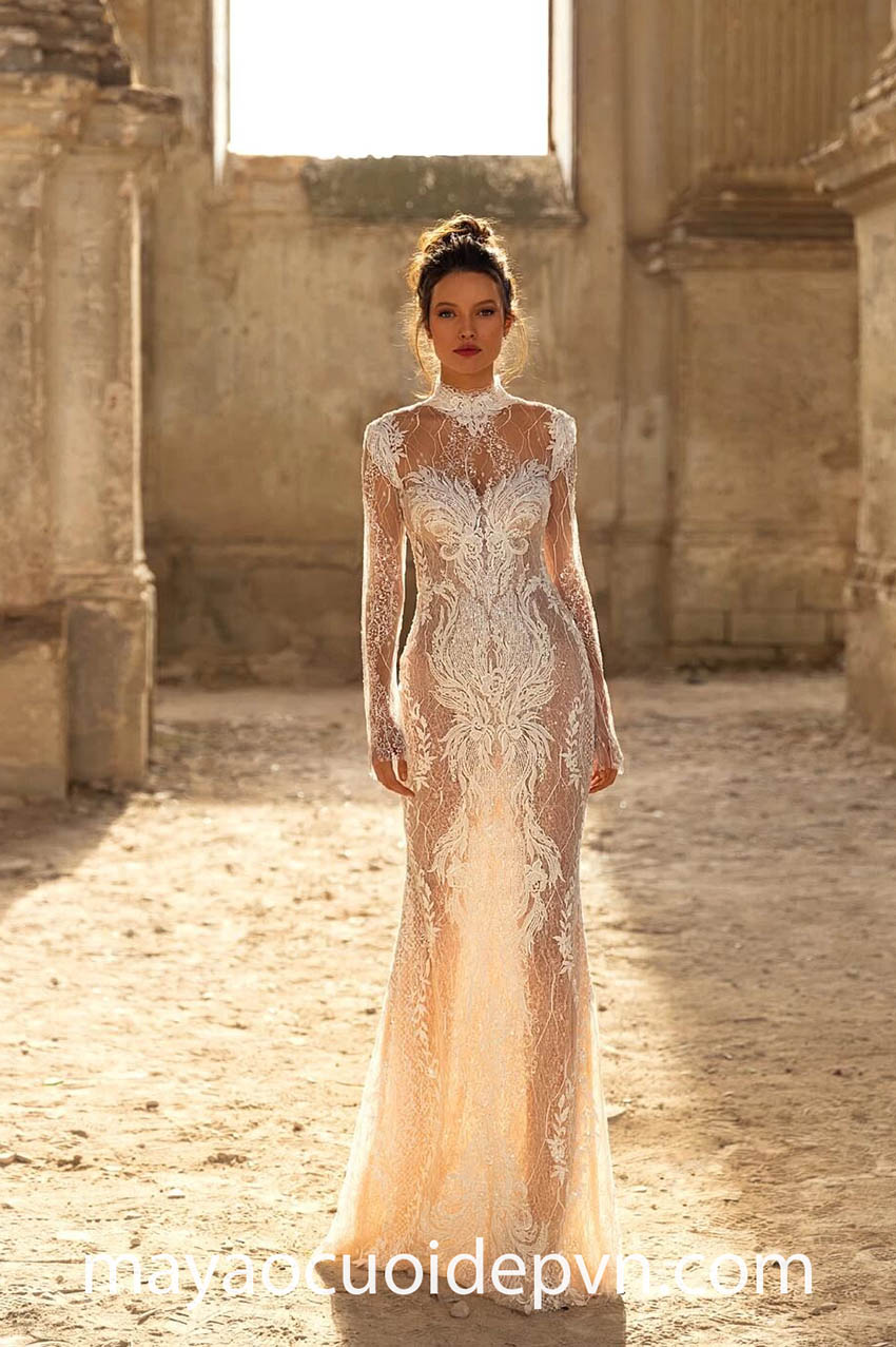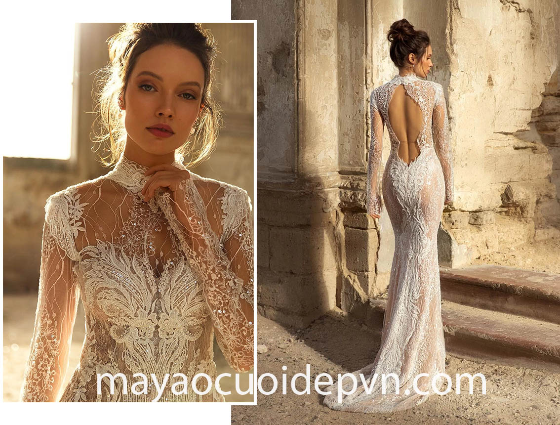 ÁO CƯỚI CỔ CAO THIẾT KẾ LỘNG LẪY