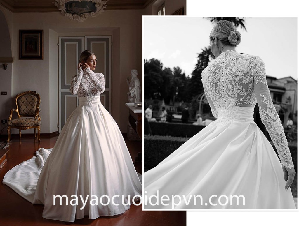 VÁY CƯỚI CỔ CAO THIẾT KẾ RIÊNG
