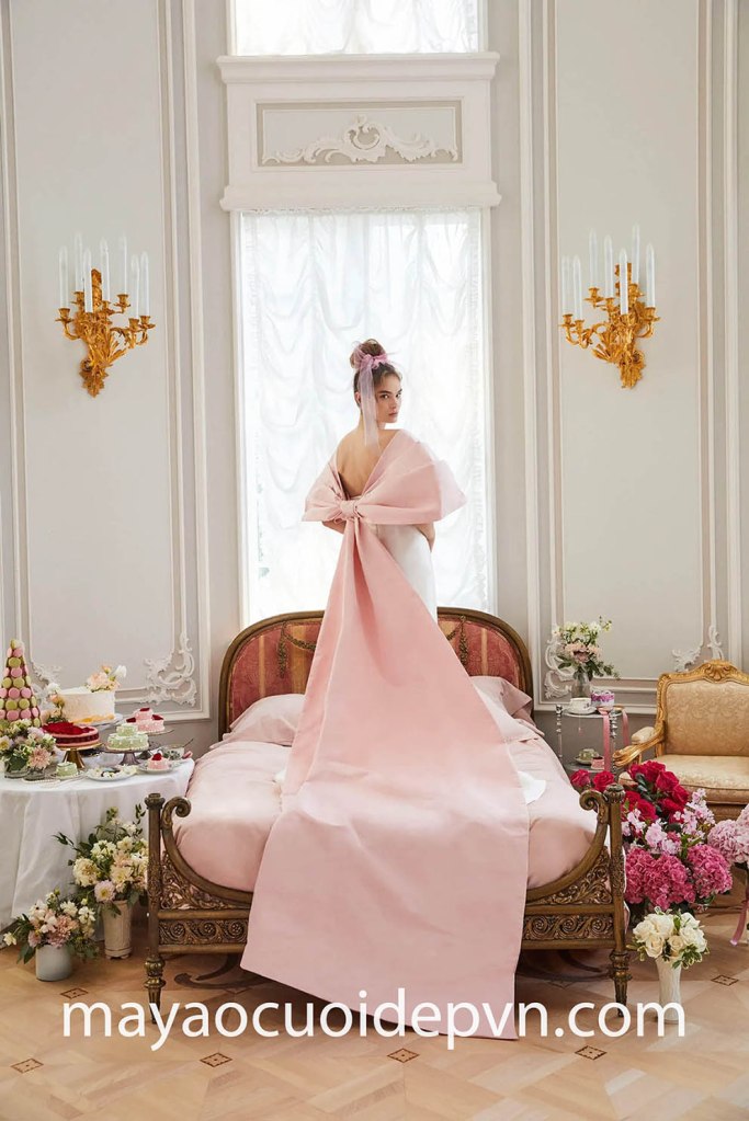 Bạn là một cô nàng tiểu thư sành điệu yêu thời trang? Váy cưới nơ 2024 mang đến cho bạn rất nhiều lựa chọn mang đậm dấu ấn cá nhân như phụ kiện áo choàng nơ oversize màu hồng pastel ngọt ngào, đuôi váy satin tà dài lộng lẫy hay kiểu phối nơ một bên phá cách,… tất cả đều góp phần tạo nên điểm nhấn đắt giá, giúp gia tăng nét duyên dáng cùng vẻ ngoài nữ tính, đầy lãng mạn mà bạn đang sở hữu.