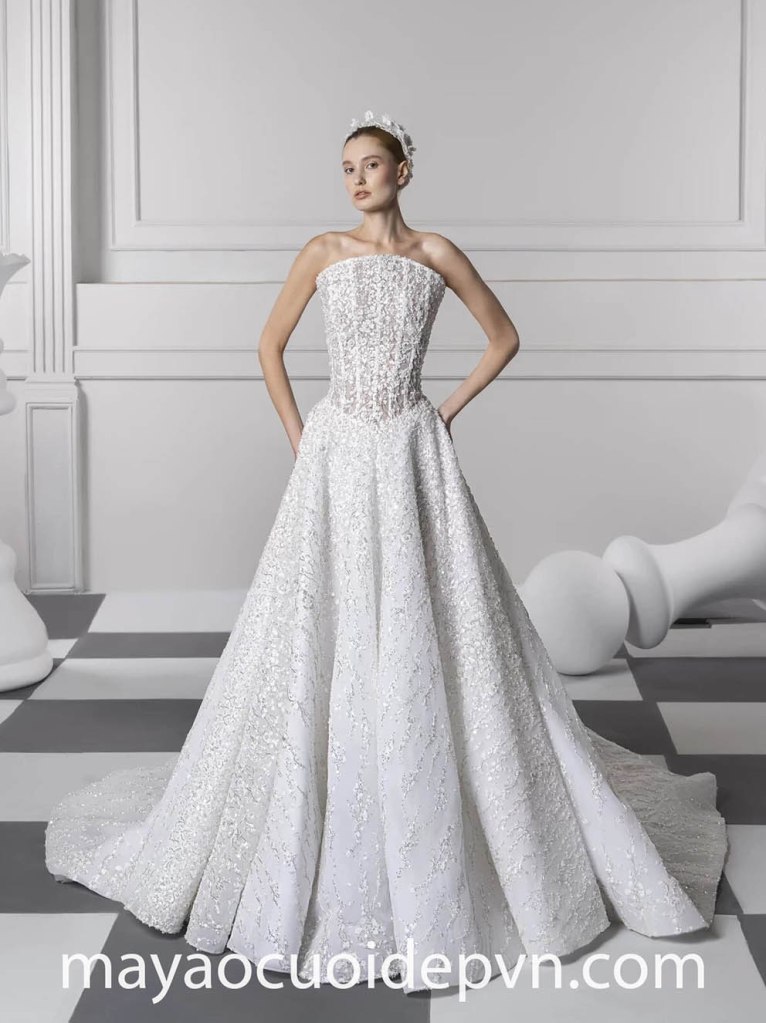 Tâm điểm của mùa cưới Thu Đông 2023-2024 chắc chắn phải điểm danh những mẫu áo cưới thiết kế riêng lộng lẫy nhất. Với sức sáng tạo không giới hạn, các nhà mốt nổi tiếng đã trình làng đến cô dâu 2024 những chiếc váy cưới hàng hiệu đầy phá cách, phom dáng lộng lẫy xa hoa kết hợp cùng những điểm nhấn đặc sắc nhất,… Tất cả đều mang sẽ mang đến cho bạn những trải nghiệm tuyệt vời nhất, hoàn toàn xứng đáng cho một siêu đám cưới mà bất kỳ ai cũng đều ngưỡng mộ.