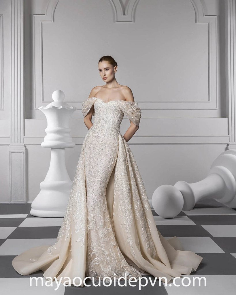VÁY CƯỚI ĐỘN VAI PHỒNG THU ĐÔNG 2024