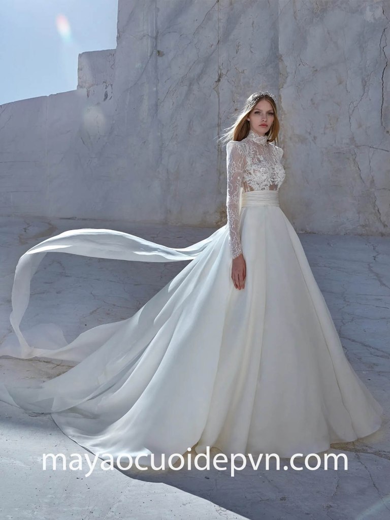 ÁO CƯỚI THU ĐÔNG CỔ CAO TAY DÀI 2023-2024