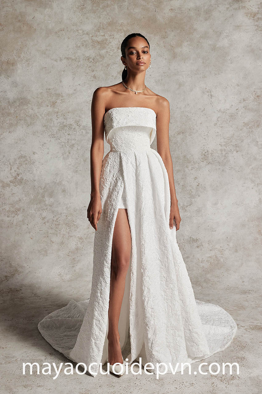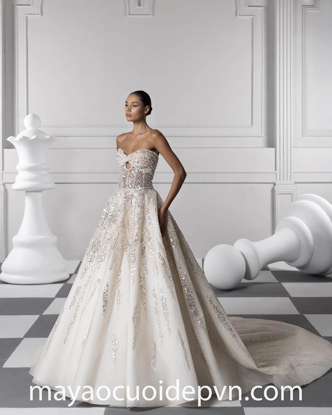 Tâm điểm của mùa cưới Thu Đông 2023-2024 chắc chắn phải điểm danh những mẫu áo cưới thiết kế riêng lộng lẫy nhất. Với sức sáng tạo không giới hạn, các nhà mốt nổi tiếng đã trình làng đến cô dâu 2024 những chiếc váy cưới hàng hiệu đầy phá cách, phom dáng lộng lẫy xa hoa kết hợp cùng những điểm nhấn đặc sắc nhất,… Tất cả đều mang sẽ mang đến cho bạn những trải nghiệm tuyệt vời nhất, hoàn toàn xứng đáng cho một siêu đám cưới mà bất kỳ ai cũng đều ngưỡng mộ.