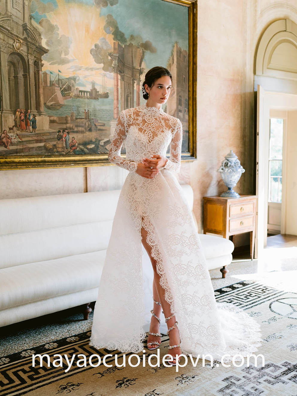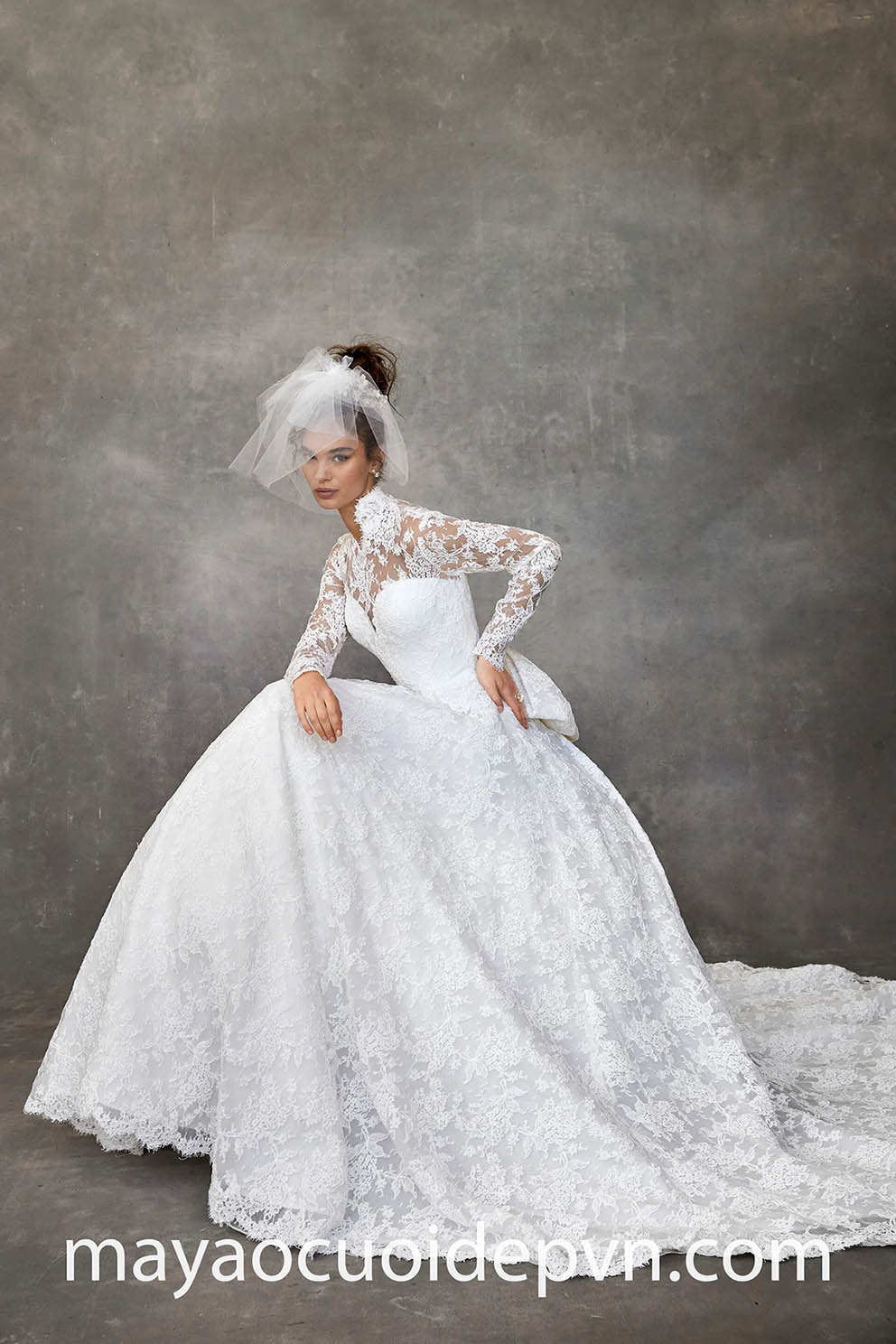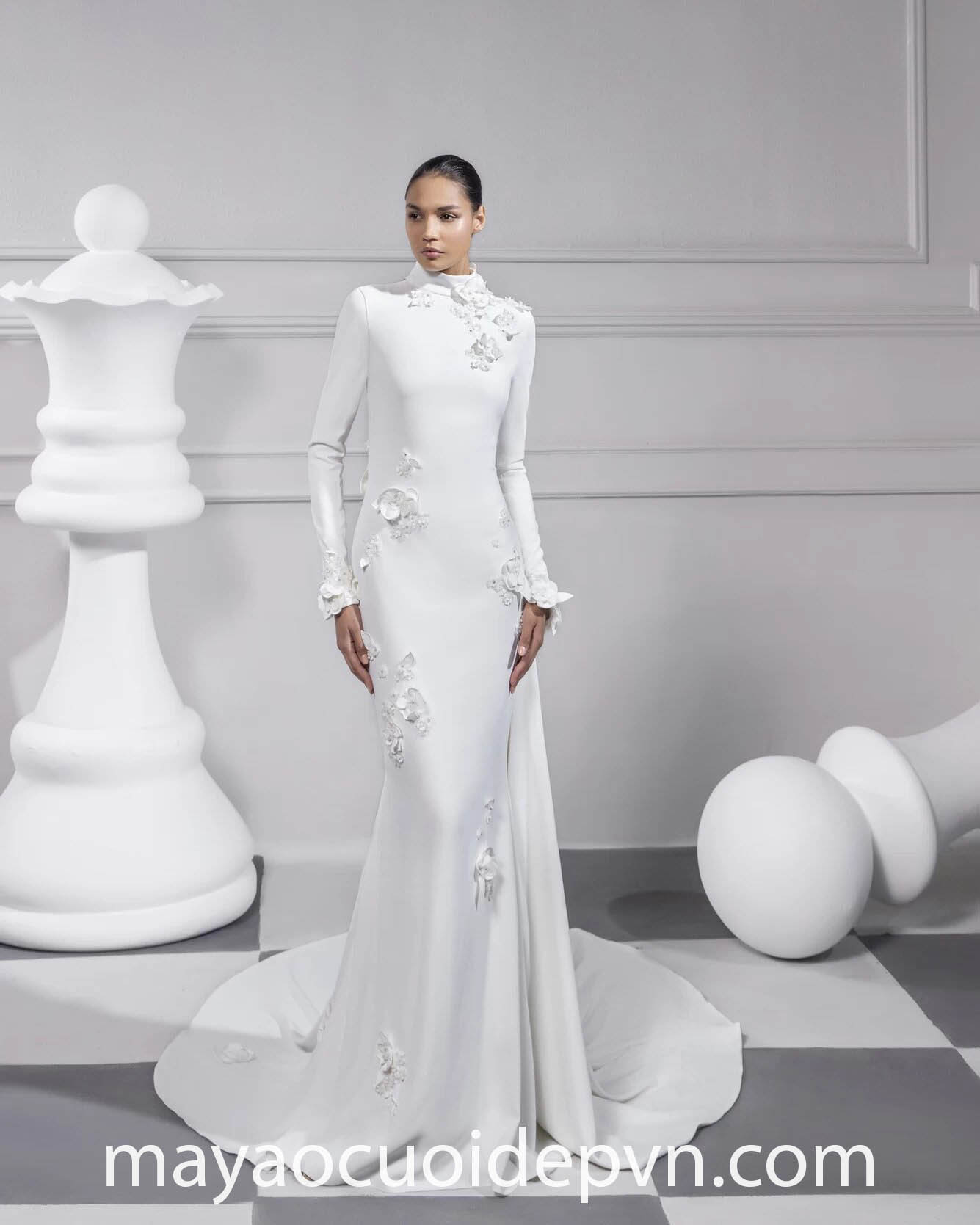 ÁO CƯỚI THU ĐÔNG CỔ CAO TAY DÀI 2023-2024