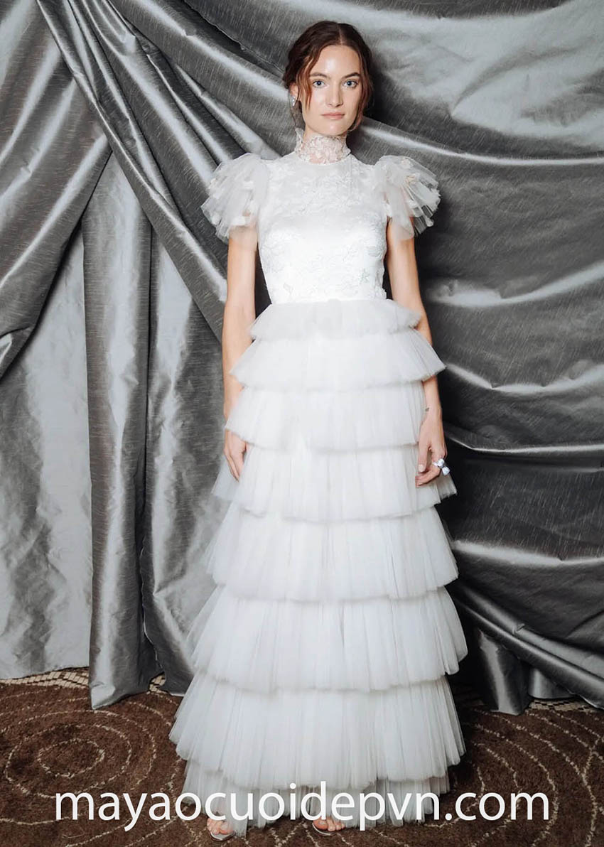 Sang đến mùa cưới Thu Đông 2023-2024, những thiết kế áo cưới Thu Đông xếp bèo tầng ngày càng trở nên đặc sắc hơn bao giờ hết. Từ kiểu váy cưới đuôi cá phối chân váy dún bèo lộng lẫy, đến kiều đầm cưới cổ cao tay cánh tiên phối tùng váy xếp tầng đầy lôi cuốn,… tất cả đều hứa hẹn mang đến cho bạn vẻ ngoài vượt ra khỏi mọi trí tưởng tượng.