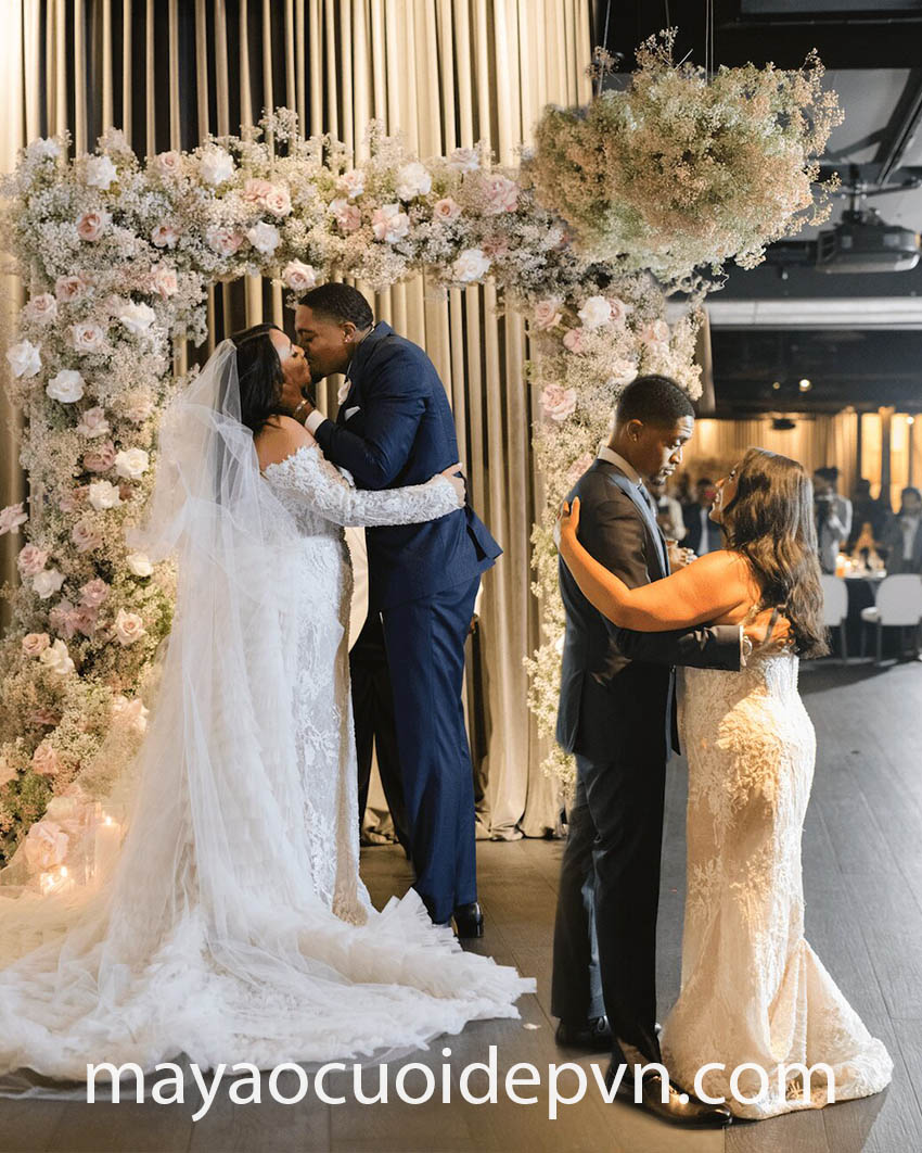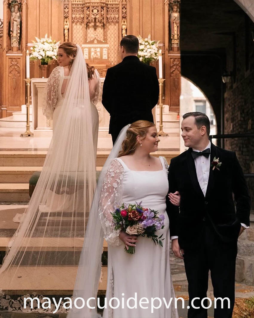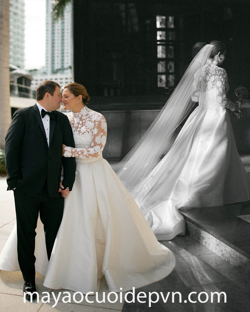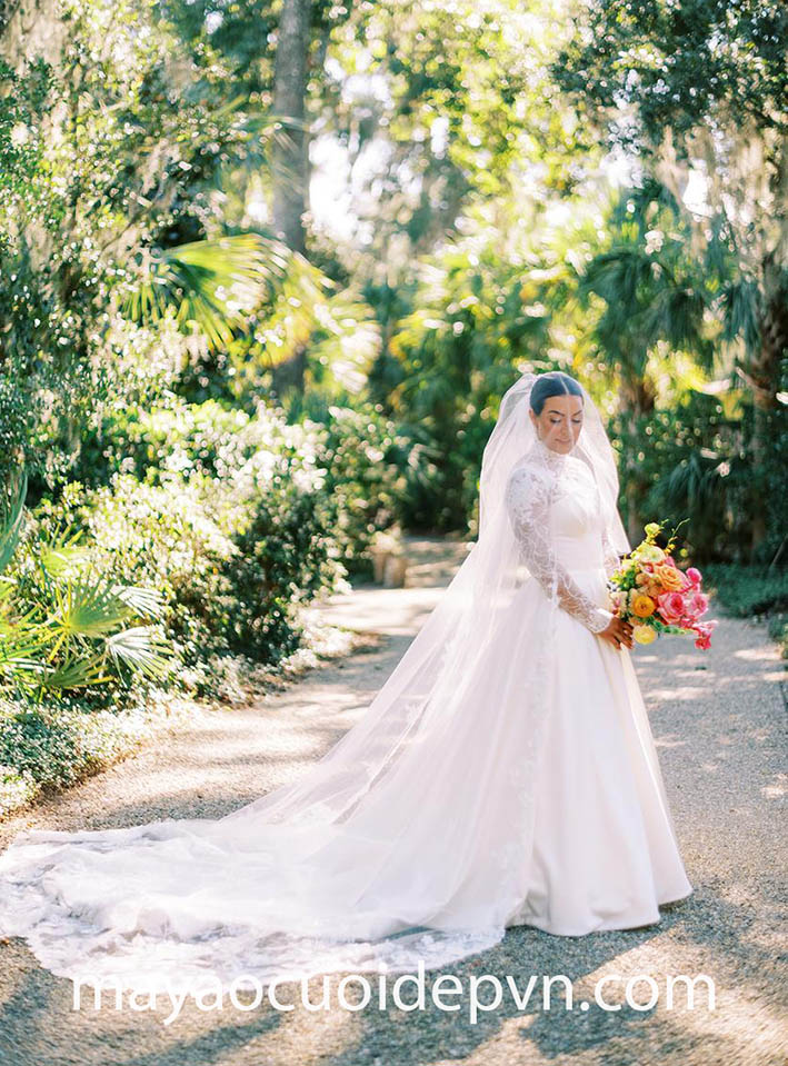 Đối với những đám cưới trang trọng và những cô dâu ưa chuộng phong cách kín đáo, một chiếc áo cưới tay dài big size là gợi ý lý tưởng dành cho bạn! Váy cưới dài tay với kiểu dáng vượt thời gian và vẻ ngoài thanh lịch sẽ giúp bạn ghi điểm tuyệt đối trong mắt mọi quan khách, đặc biệt là với các bậc phụ huynh ở hai bên gia đình.
