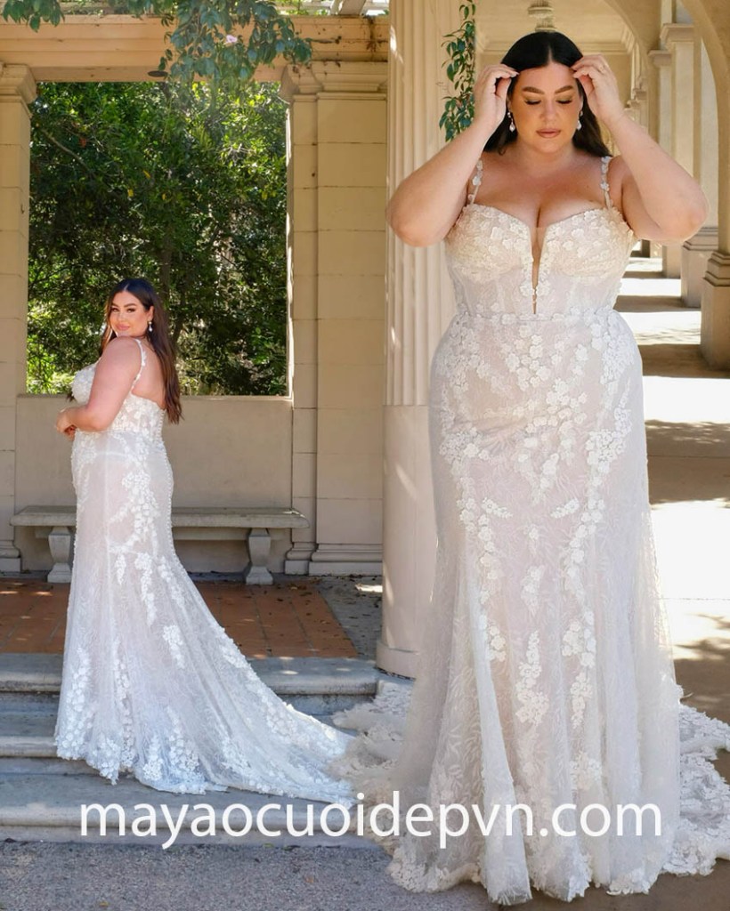 VẺ NGOÀI THƠ MỘNG CÙNG ÁO CƯỚI BIG SIZE PHỐI REN