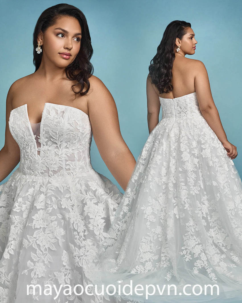Khi tìm kiếm phong cách thời trang phù hợp với những cô dâu ngoại cỡ, áo cưới cúp ngực big size tuyệt đẹp thường được coi là một trong những kiểu váy tôn dáng nhất, phù hợp với mọi hình dáng cơ thể. Đây là lựa chọn lý tưởng cho những cô dâu plus size có vòng một lớn, làm nổi bật bờ vai với cảm giác nữ tính cổ điển cùng một chút hơi hướng gợi cảm, đặc biệt nếu bạn chọn kiểu cúp tim hoặc cổ áo xẻ V sâu.
