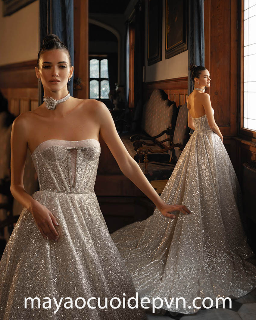 Make your big day truly captivating with an intricate sparkle corset wedding gown. Light up your happily ever after with luxurious and mesmerizing sparkly dresses features exposed boning enhances your bling silhouette.