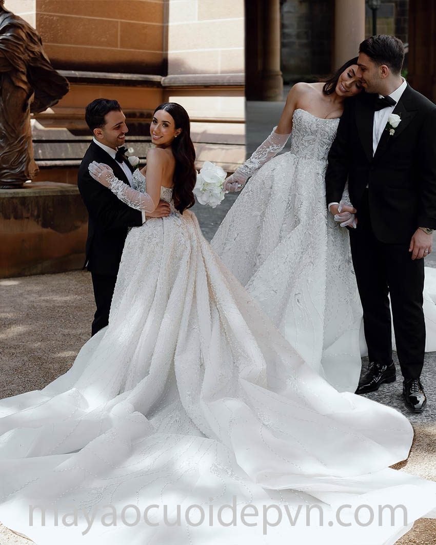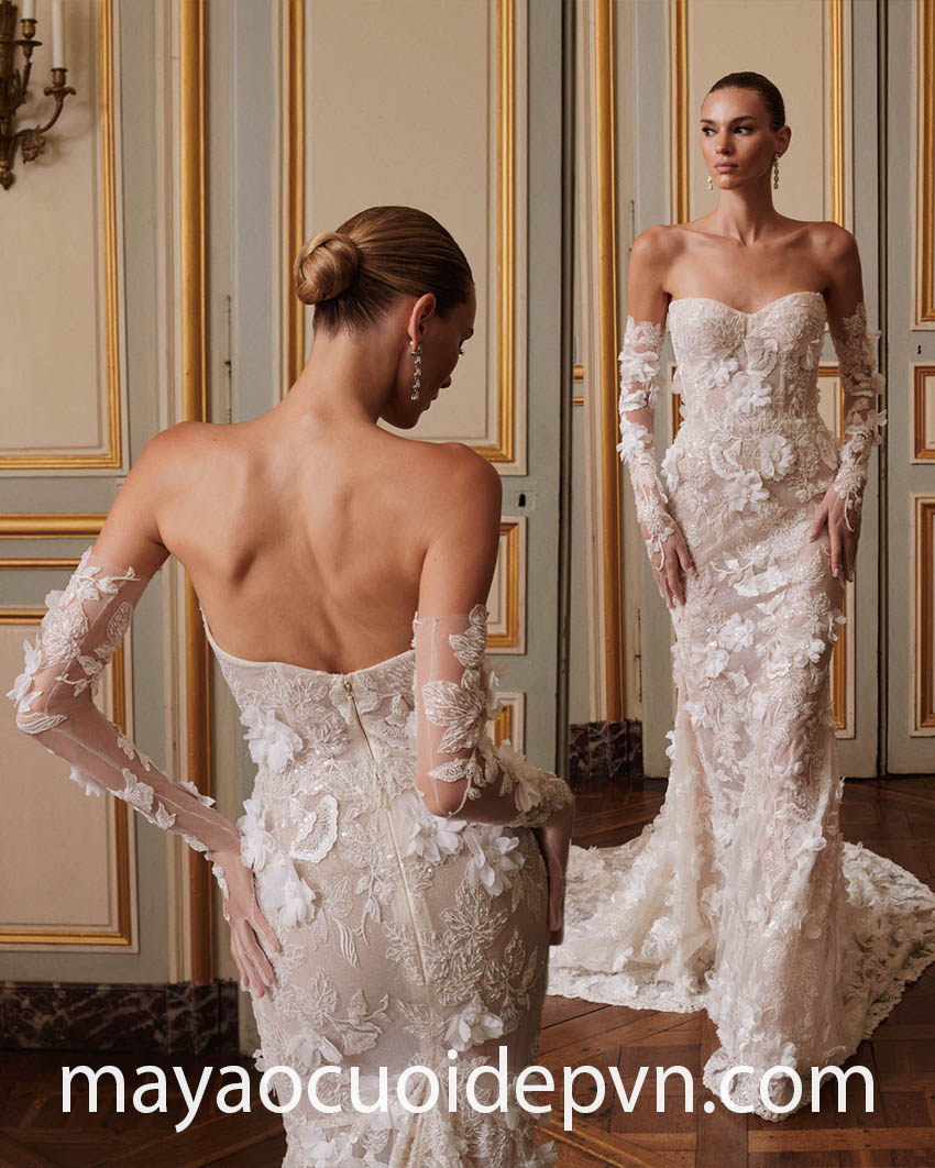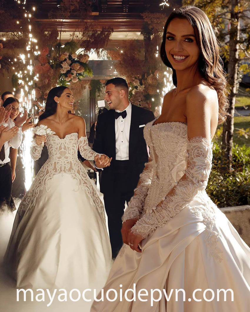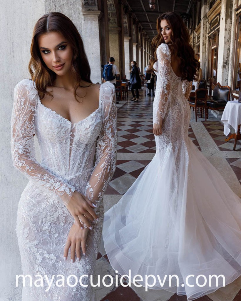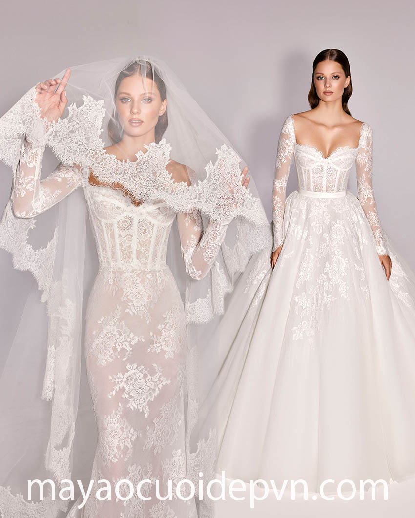 TRANG TRỌNG THANH LỊCH CÙNG ÁO CƯỚI CƯỚI CORSET TAY DÀI