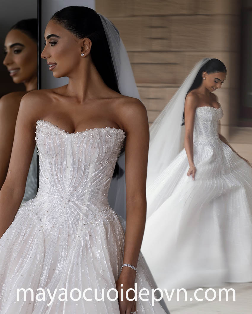 SANG TRỌNG KIÊU SA CÙNG ÁO CƯỚI CORSET LẤP LÁNH