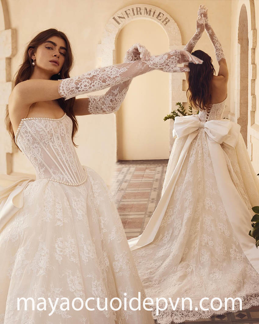 VÁY CƯỚI CORSET HẠ EO BASQUE-WAIST MỸ MIỀU