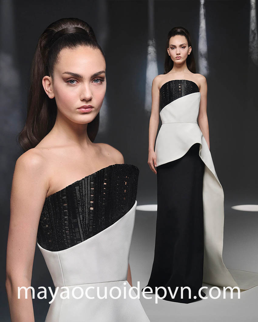UNIQUE BLACK AND WHITE COUTURE BRIDAL GOWN