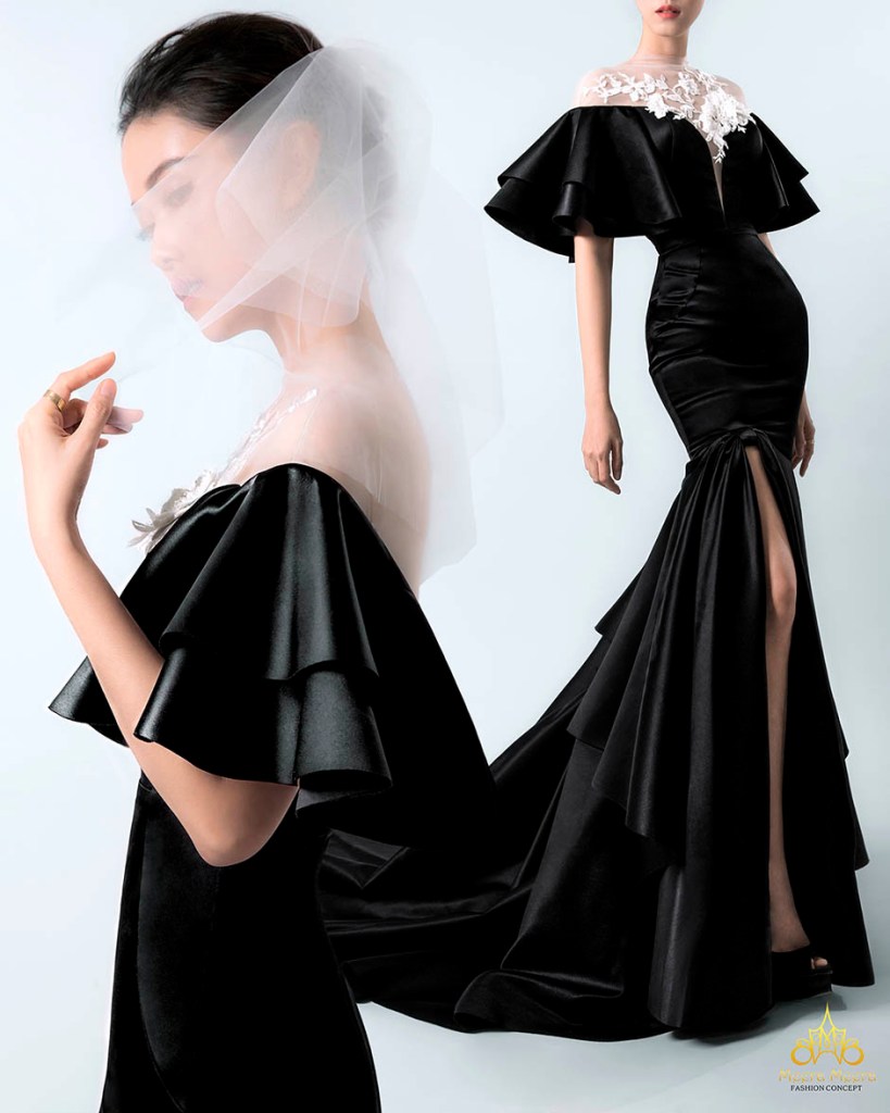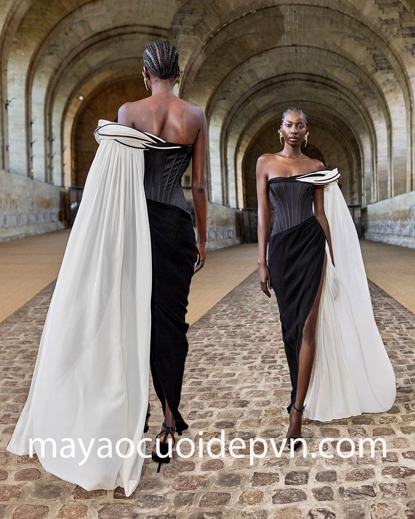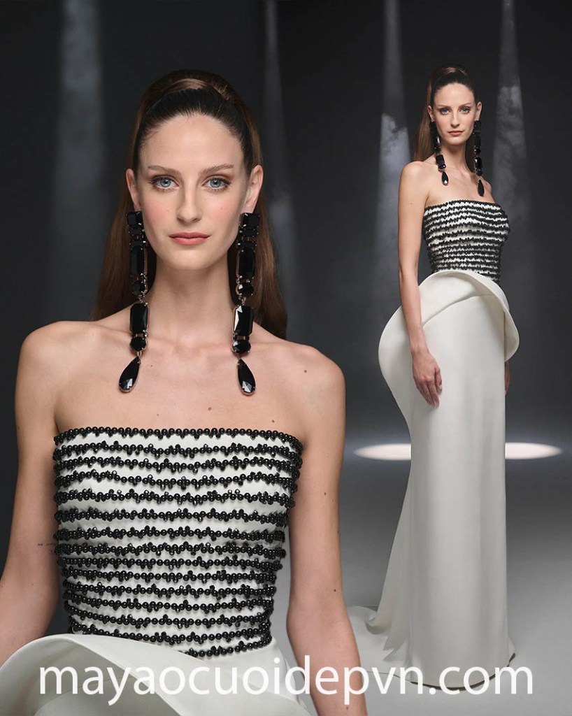 ÁO CƯỚI HAUTE COUTURE TRẮNG ĐEN ĐỘC ĐÁO