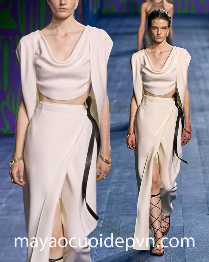 Khi chúng ta xem xét các xu hướng thời trang cô dâu trong mùa Couture Thu Đông 2024 này, có một phong cách thực sự gây ấn tượng trên sàn diễn: váy cưới Couture xẻ tà cao sexy. Đường xẻ tà gợi cảm là cách cực kỳ sang trọng để thể hiện khía cạnh táo bạo, quyến rũ đầy tinh tế trong ngày trọng đại của bạn với tâm điểm là đôi chân nuột nà thu hút mọi ánh nhìn.