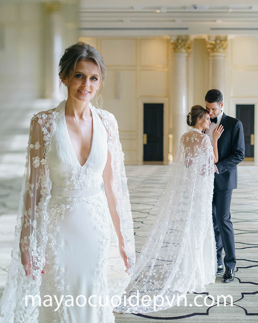 AUTUMN GODDESS-INSPIRED CAPE AND CAPELET WEDDING GOWN