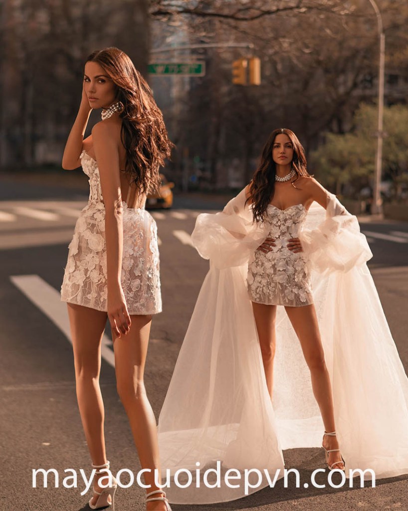 If you’re looking for a convertible gown that will give you two looks in one and more, check out a plenty of versatile fall bridal accessories for multiple outfits. From detachable train, removable sleeves, gloves to bridal jacket which are a little more traditional but still have a fashion forward twist.