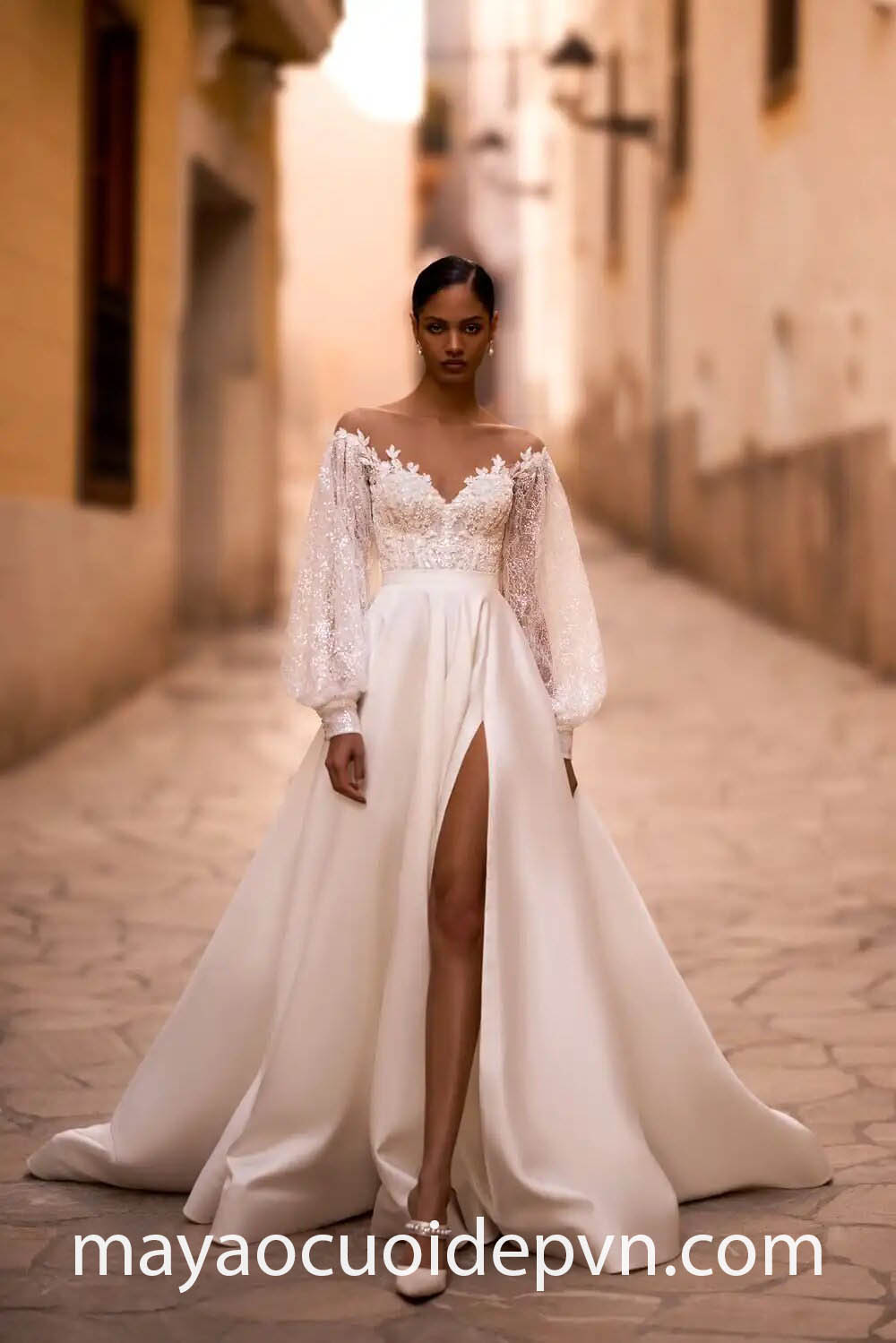 If you want something alternative, puff sleeve fall wedding dress will make you feel unique and stylish on your cozy ceremony. From dramatic bell sleeves to chic bishop sleeves or the versatility of detachable options, puff sleeve is just a perfect way to make your dress truly one of a kind.