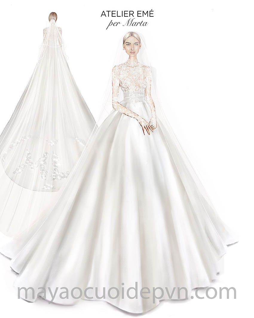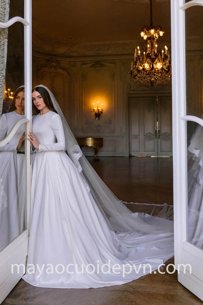 Khi bạn muốn thể hiện sự kiêu hãnh và nét độc đáo riêng biệt, váy cưới couture đuôi dài phong cách Hoàng gia chính là lựa chọn hoàn hảo. Với thân váy được thiết kế công phu, phần corset tôn dáng cùng tùng váy có đuôi dài lộng lẫy,… tất cả khiến bộ cánh này không chỉ là một tác phẩm nghệ thuật mà còn là biểu tượng của sự xa hoa và quyền quý. Bạn sẽ là cô dâu độc đáo, nổi bật và đầy quyến rũ trong tác phẩm nghệ thuật của riêng mình.