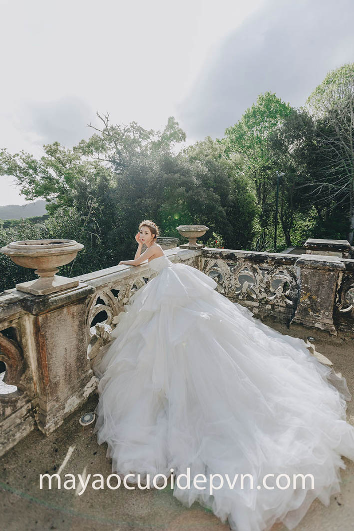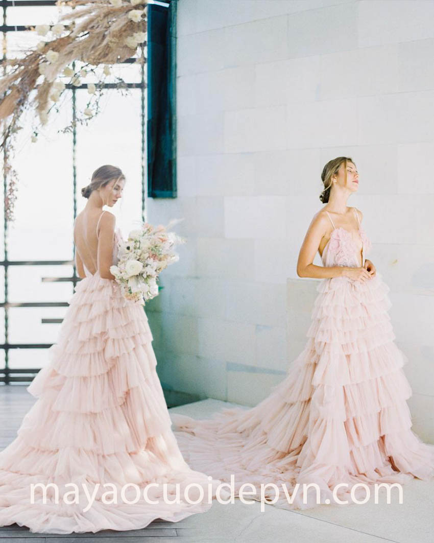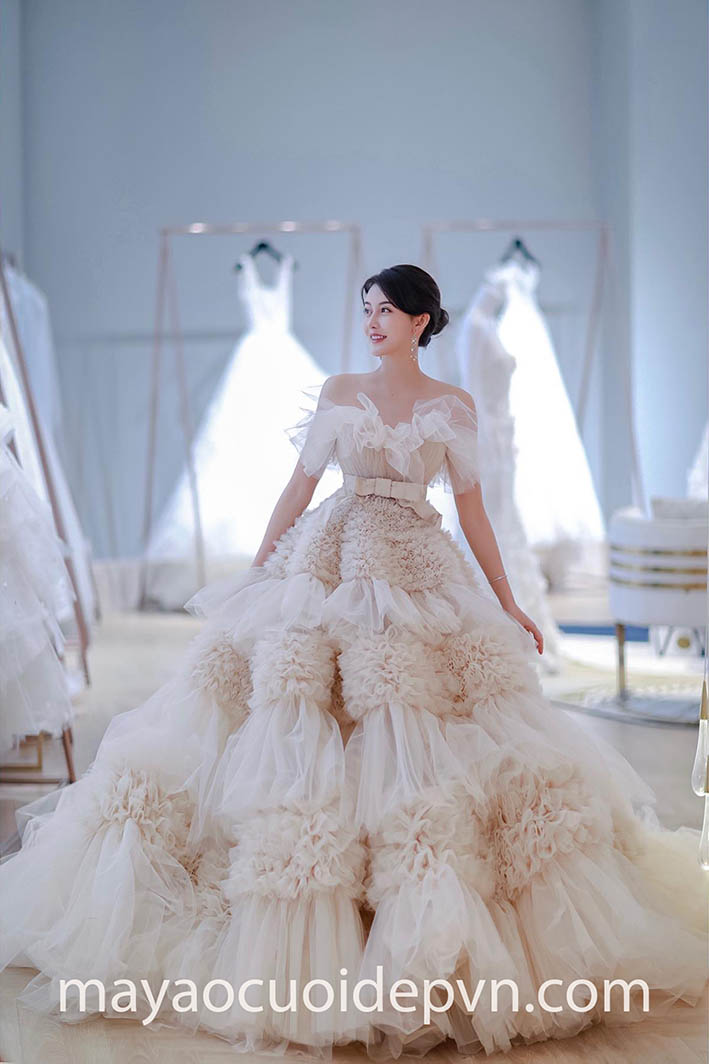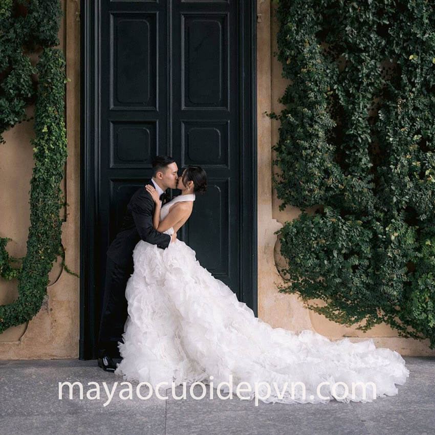 VÁY CƯỚI ĐUÔI DÀI XẾP BÈO TẦNG ẤN TƯỢNG