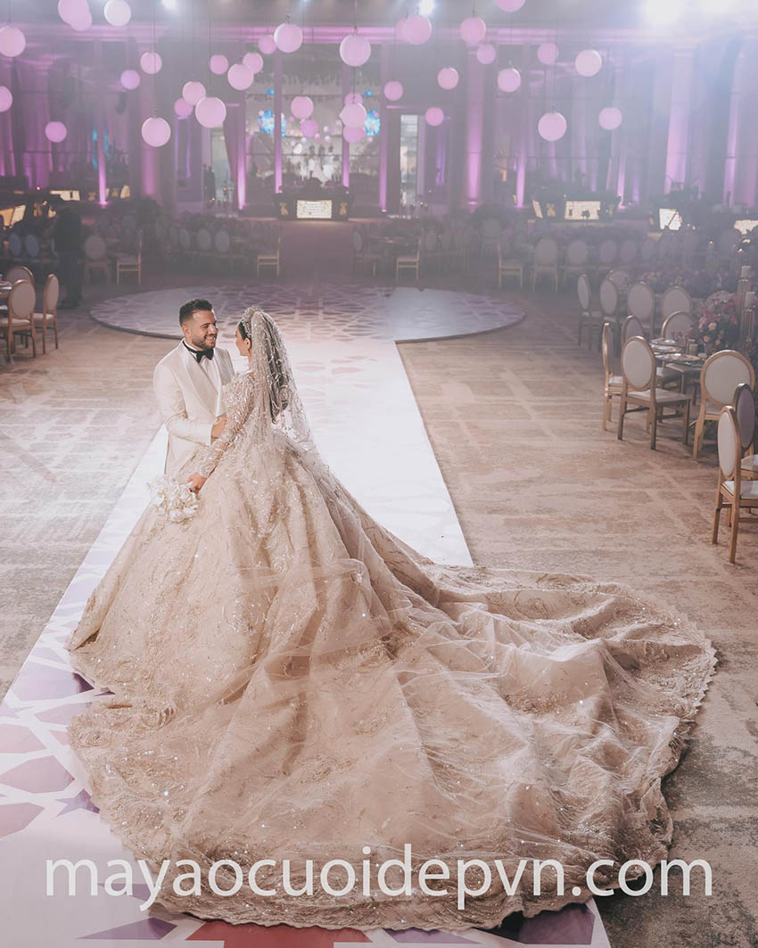 Trong ngày cưới của bạn, không chỉ có tình yêu ngập tràn, mà còn là khoảnh khắc bạn bước vào lễ đường trong chiếc váy cưới lộng lẫy, với tà váy dài tuyệt đẹp cuốn theo mỗi bước chân. Đó chính là thời khắc hoàn hảo để bạn tỏa sáng như một nàng công chúa bước ra từ những câu chuyện cổ tích, khiến mọi ánh nhìn phải dõi theo và trái tim loạn nhịp vì vẻ đẹp của bạn