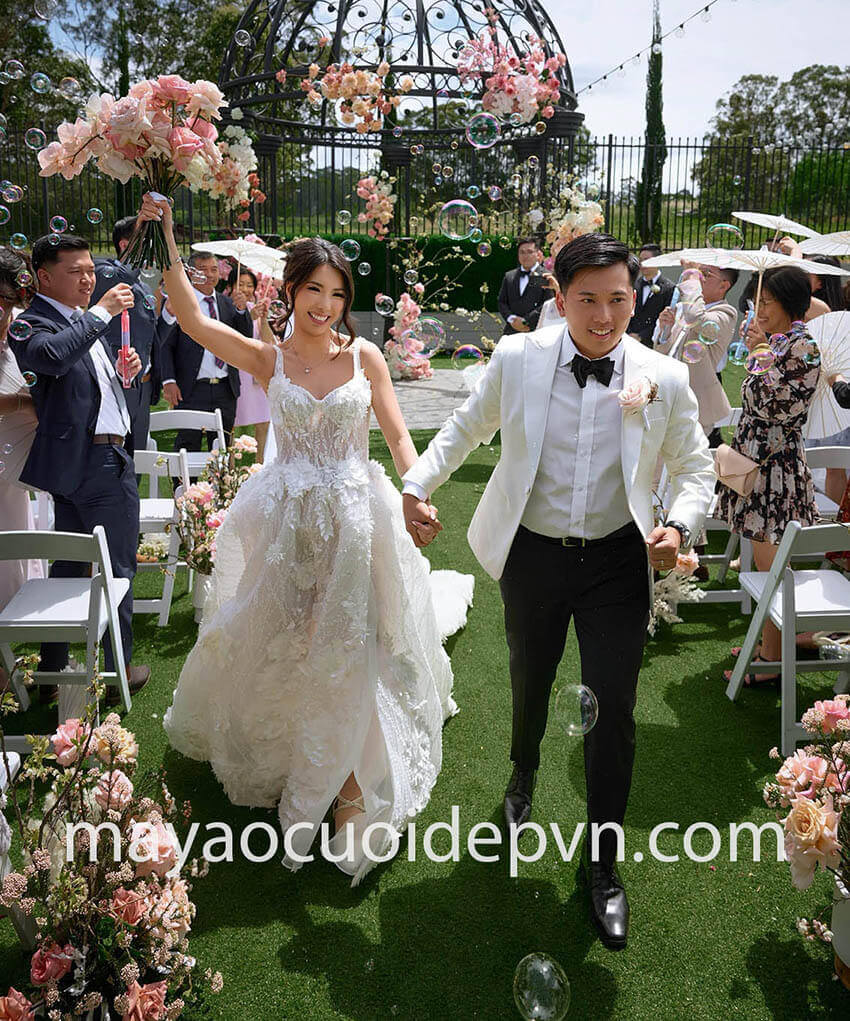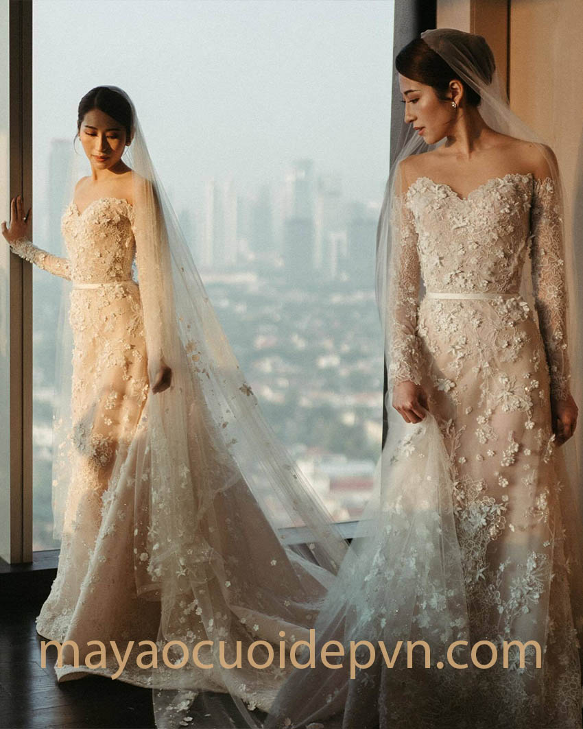 ÁO CƯỚI CÓ ĐUÔI DÀI THIẾT KẾ RIÊNG ĐỘC ĐÁO